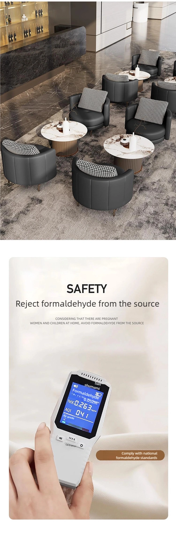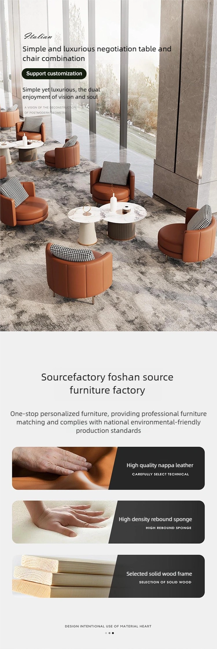 Geeignet für moderne Räume: Dieses Lobby-Möbelset eignet sich für eine Vielzahl von öffentlichen Räumen, darunter Hotel- und Unternehmens-Lobbys, Empfangs- und Verhandlungsbereiche, Räume für die Zusammenarbeit in Unternehmen oder zwanglose Arbeitsbereiche.