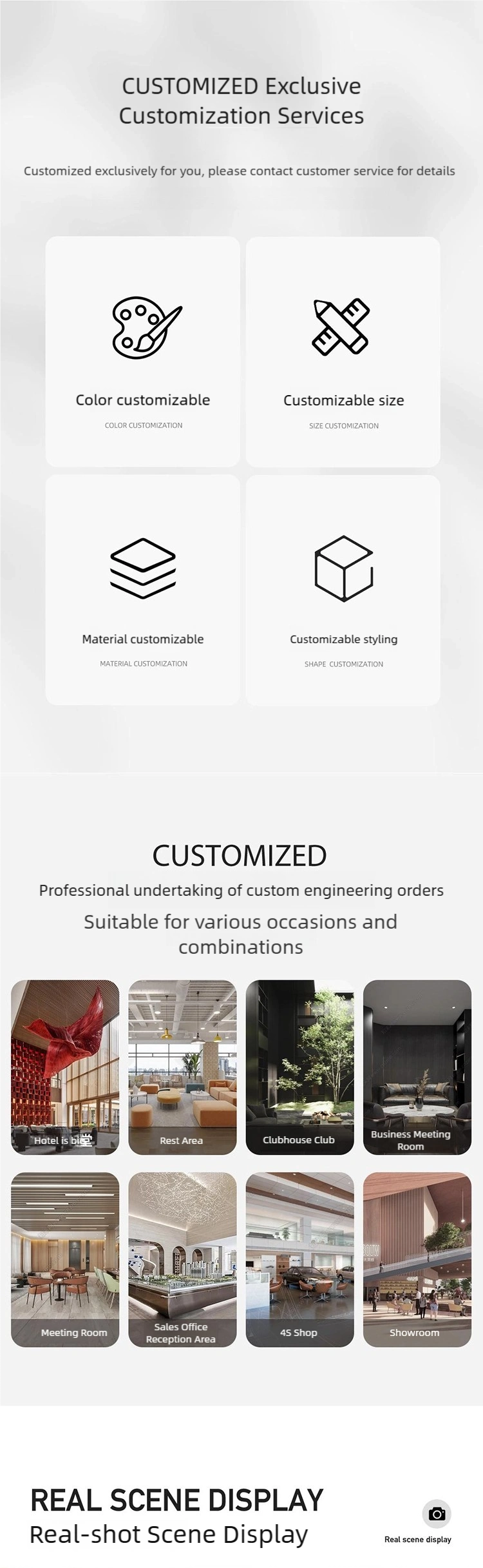 OEM/ODM Supported: Known as a lobby furniture manufacturer from China, Youmu Shiguang Furniture offers competitive prices, commercial-level resilient hospitality furniture for brands, hotels, and large malls.
