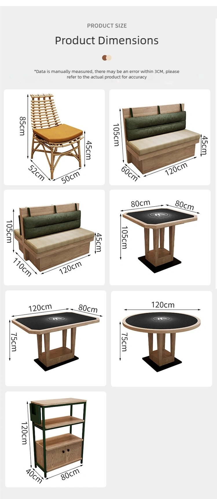 - Unique Craftsmanship and Material Advantages: A sturdy, solid wood frame, leather/fabric upholstery, high-density foam, and durable paper rope weaving add a unique sense of leisure and natural texture to the restaurant space.