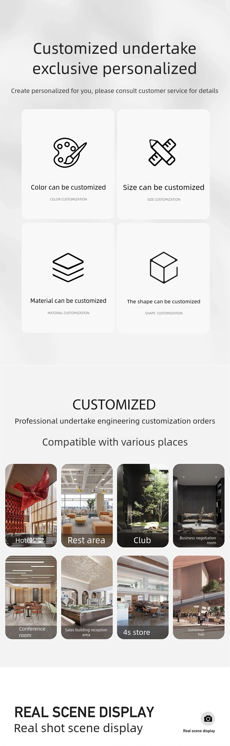 We offer comprehensive OEM and ODM support, allowing you to customize materials, colors, sizes, and finishes to perfectly match your brand and decor style, creating a harmonious and elegant lobby environment.