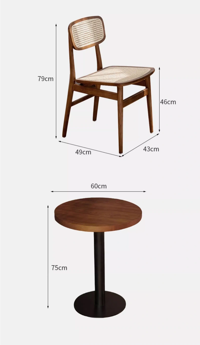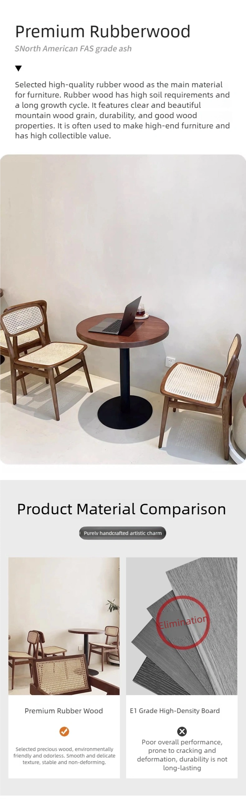 Wholesale vintage-style coffee table and chair sets, combining classic charm with modern durability, create a warm and inviting atmosphere for your customers. The rattan chair seats are comfortable and breathable, while the solid wood round table is sturdy and elegant. We offer factory-direct pricing, providing highly competitive wholesale prices for bulk orders across multiple locations, saving you costs.