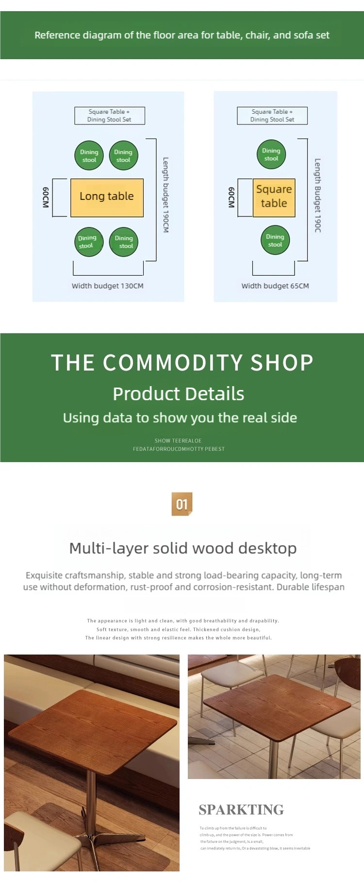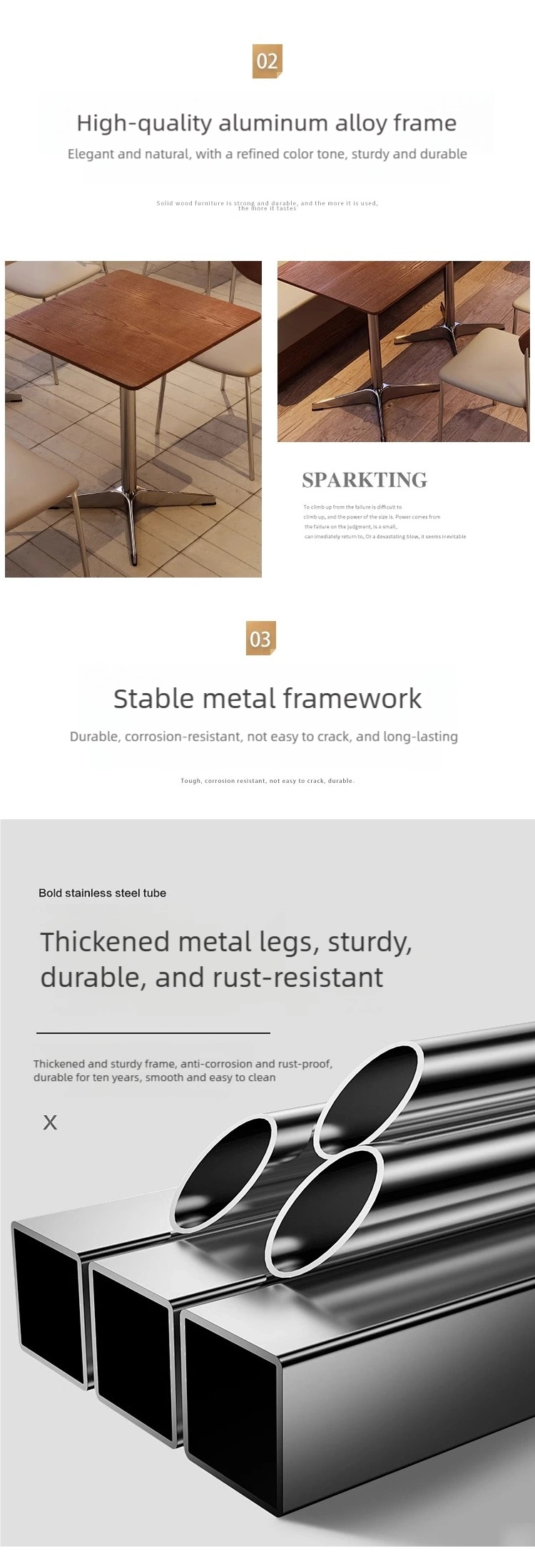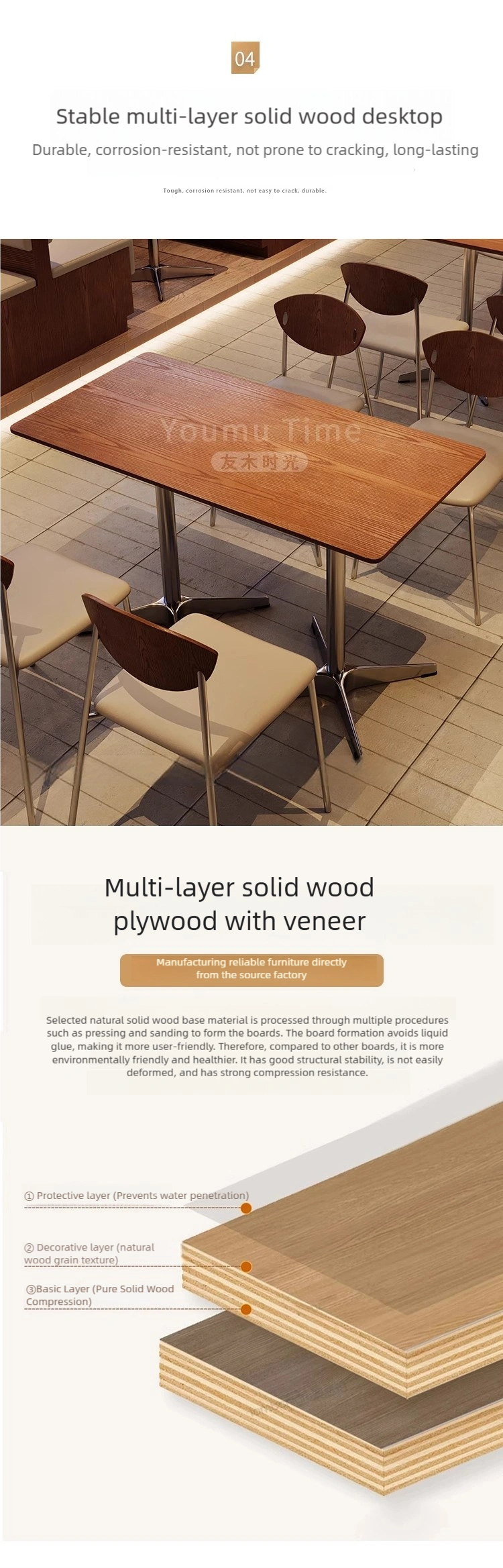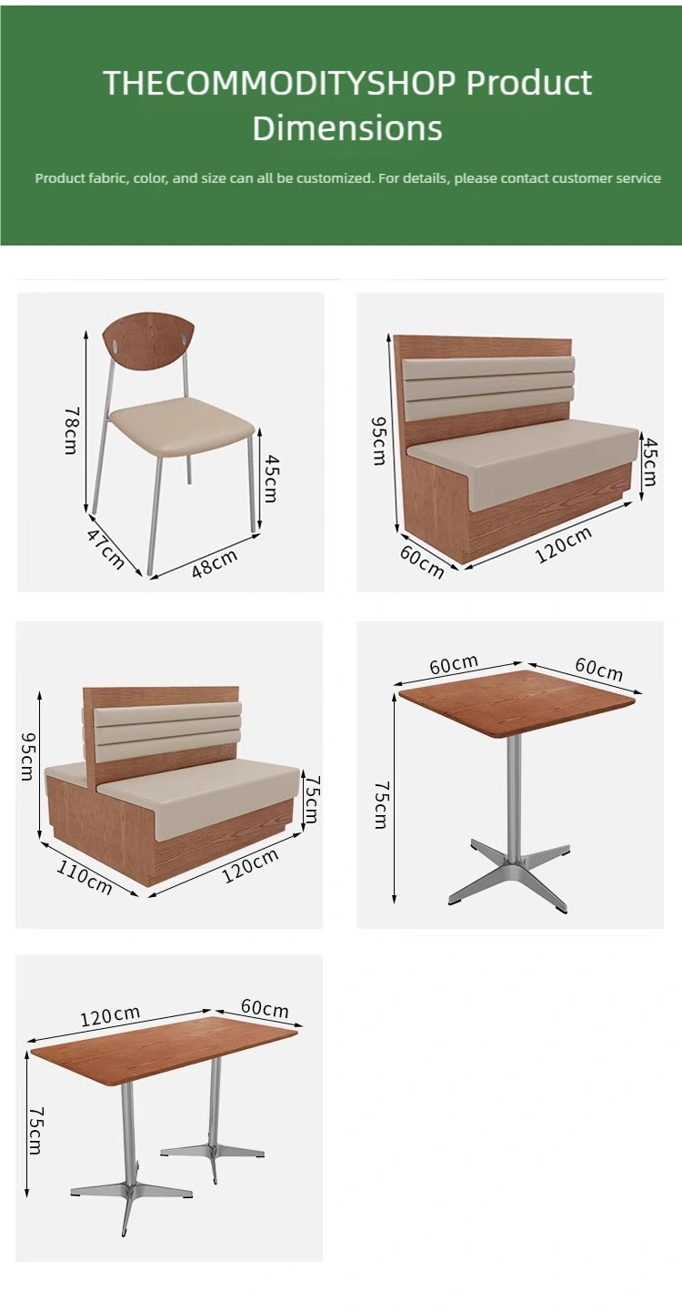 - Versatile Commercial Use: This restaurant furniture set combines durable materials with a clean, modern aesthetic, making it suitable for cafes, bistros, and dining halls. Its mix of solid wood textures and metal frames delivers both style and long-term performance.