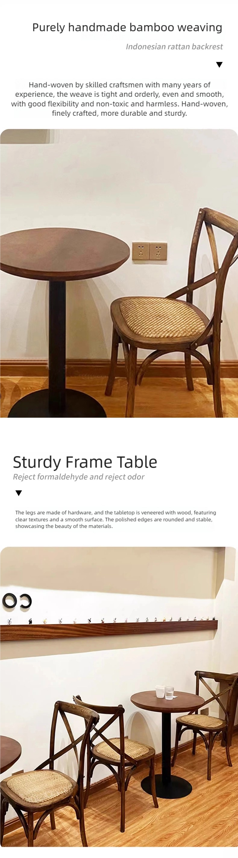 - Space-Saving Design: The compact round table and slender chairs efficiently utilize limited floor space, making them ideal for small restaurants, cafes, and coffee corners.