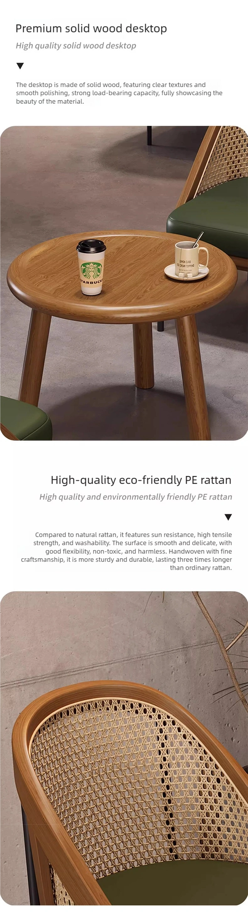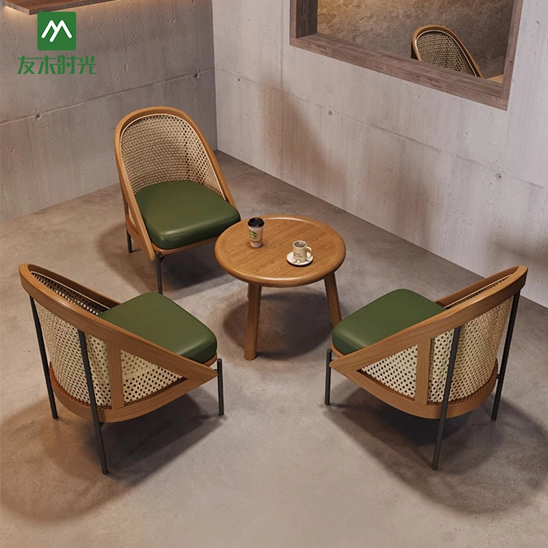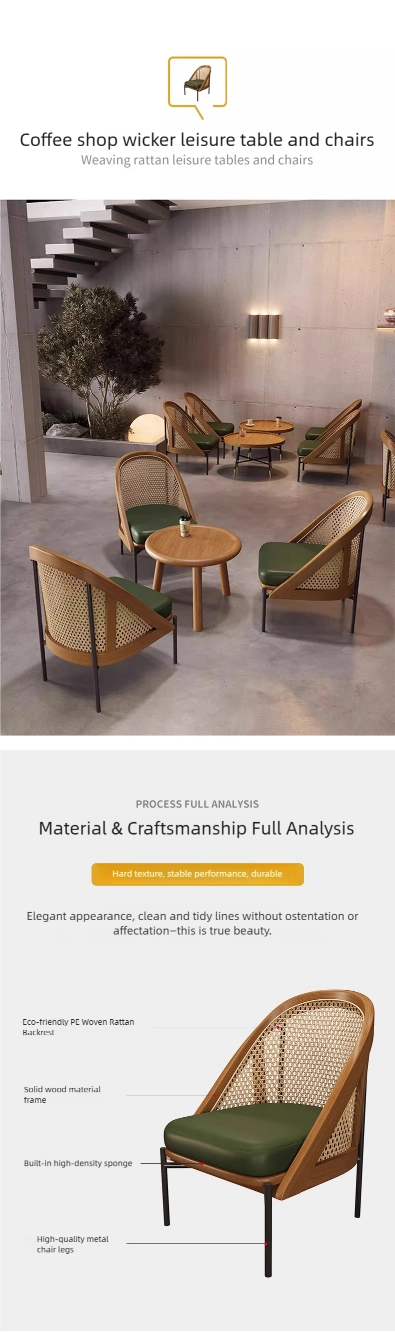 Wholesale Japanese Wabi-Sabi Style Rattan Coffee Shop Table and Chair Set