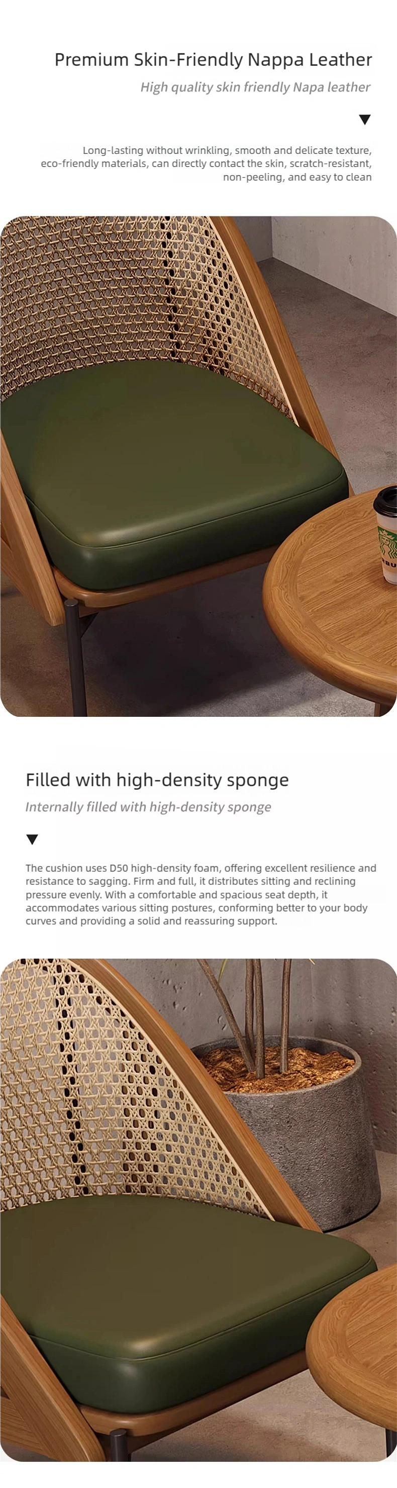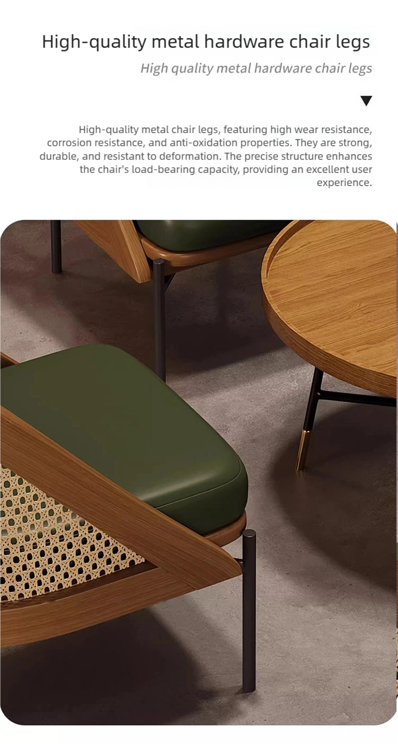 Metal frame +Solid wood woven rattan + high-density sponge + premium leather |