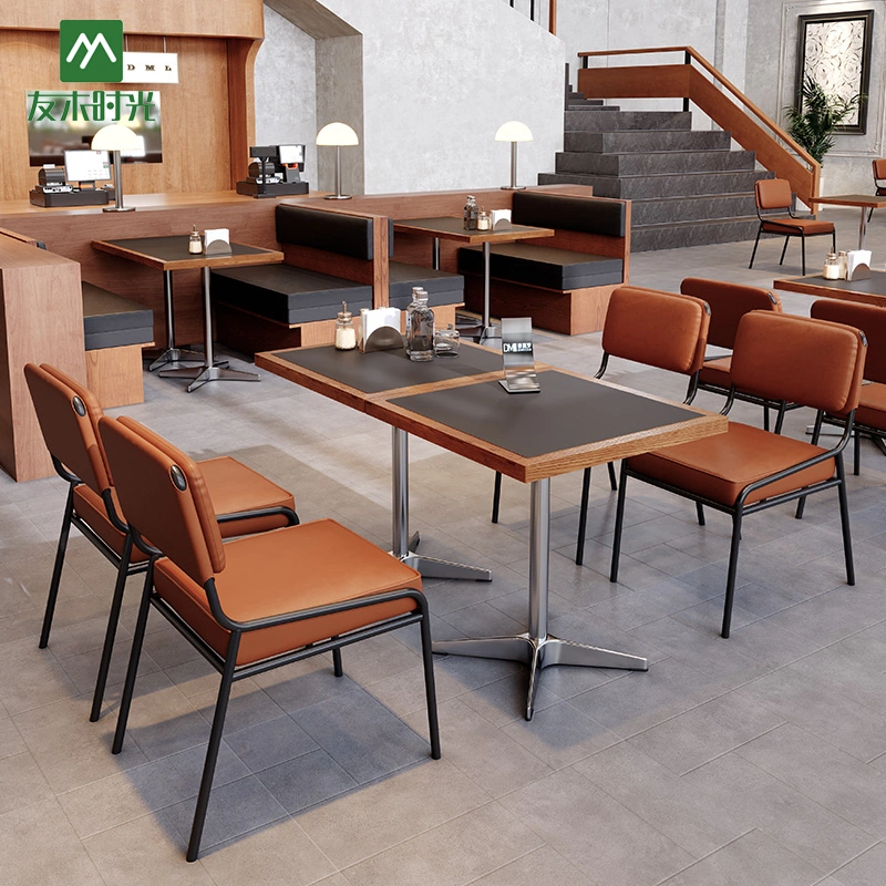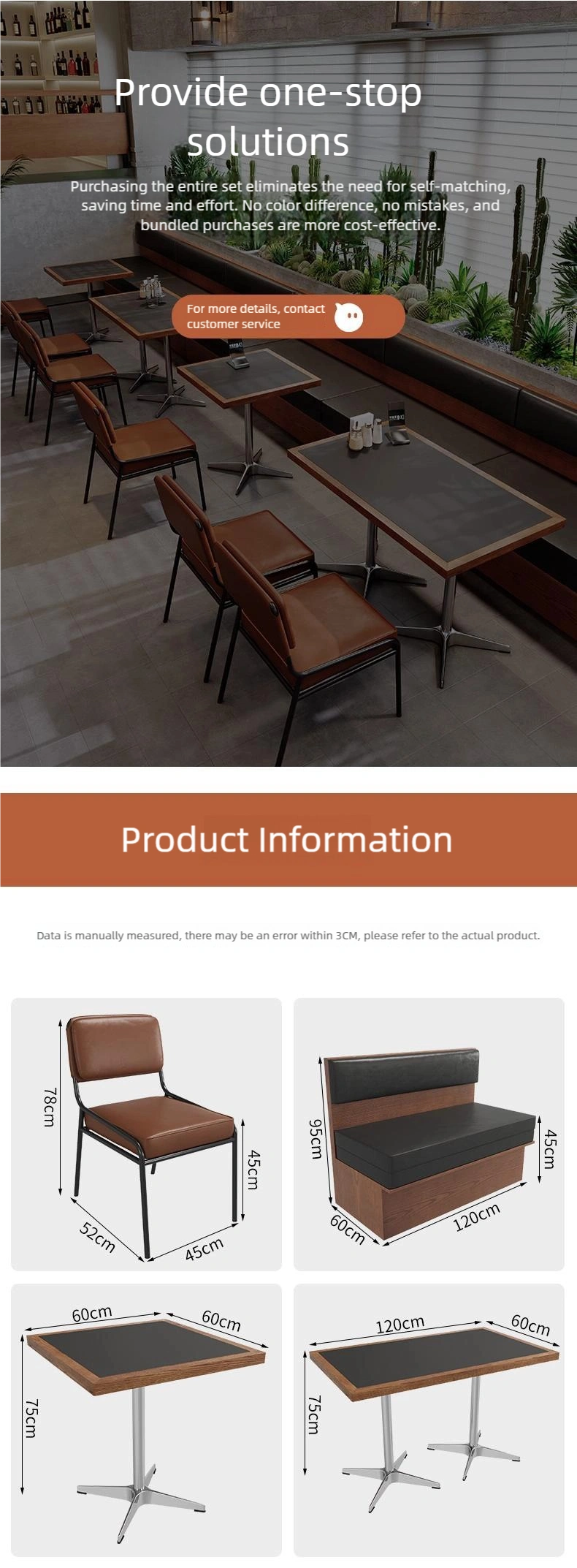 Wholesale restaurant and cafe furniture. Elevate your cafe or restaurant with our modern leather and metal table and chair sets. Combining style and durability, these sets perfectly blend sleek leather seating with sturdy metal frames, offering both comfort and longevity. They are ideal for cafes, dessert shops, and trendy restaurants.