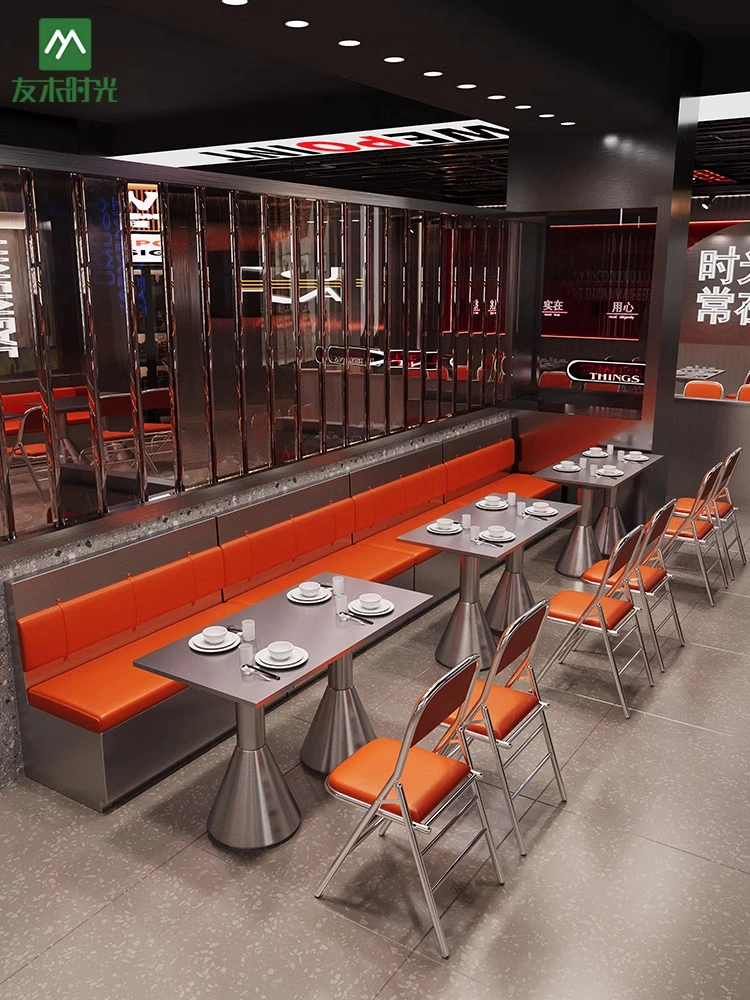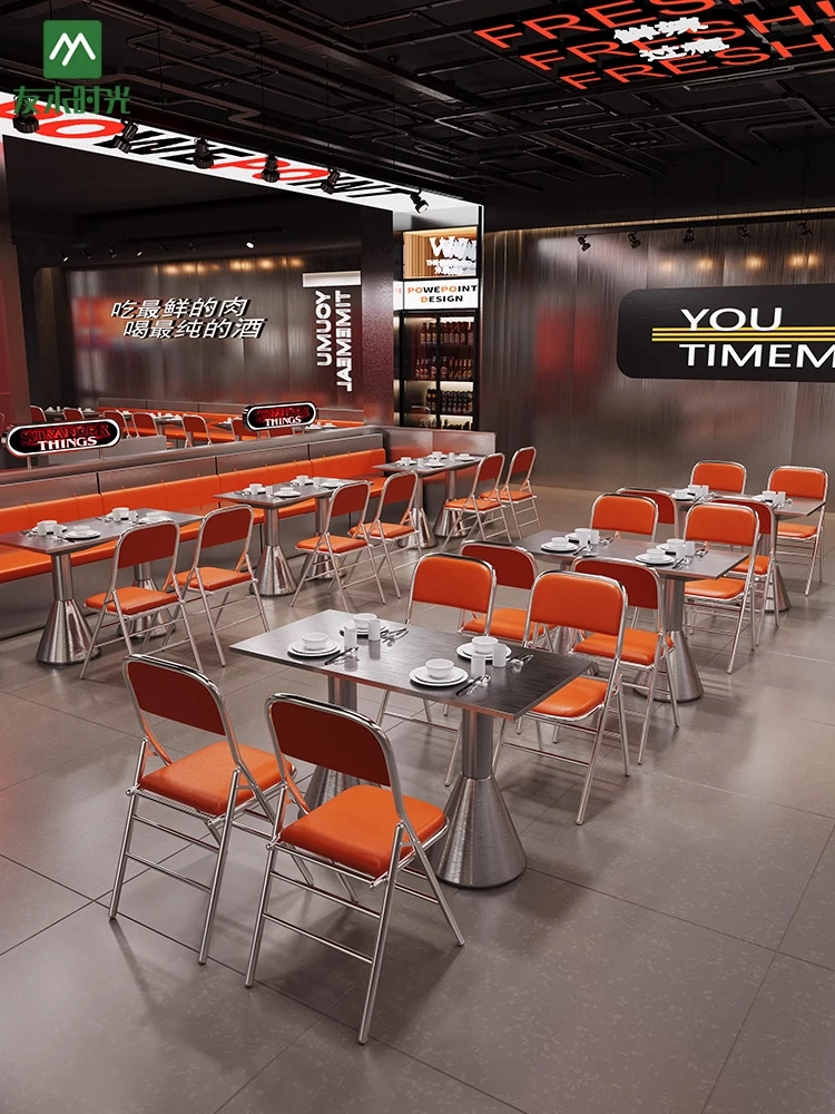 - Modern and Vibrant Design: The restaurant table and chair set features a bold bright orange color scheme, adding a modern and vibrant atmosphere to any dining space.