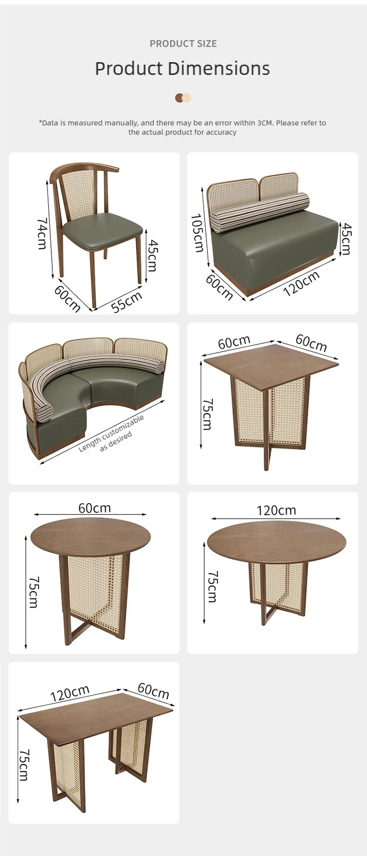 Soft and Comfortable Seating: The seat cushions for both chairs and booths of our rattan design restaurant furniture are made of high-quality, scratch-resistant, and durable leather, filled with high-density foam for softness, comfort, and resistance to sagging.