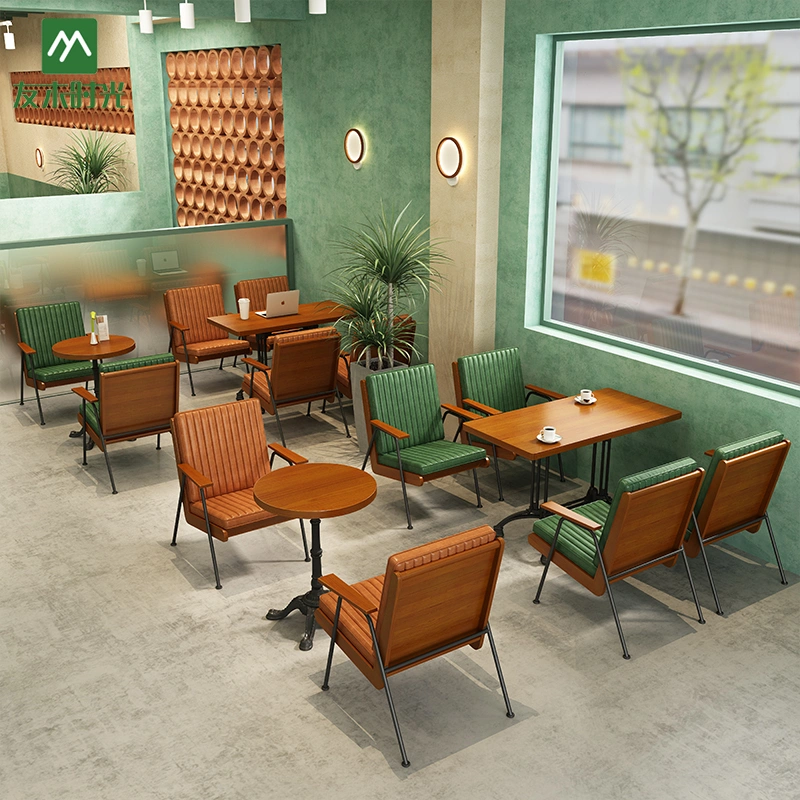 Easy-to-Clean Surfaces: The wholesale coffee shop furniture features high-quality leather upholstery that is easy to wipe clean, making it ideal for commercial environments.