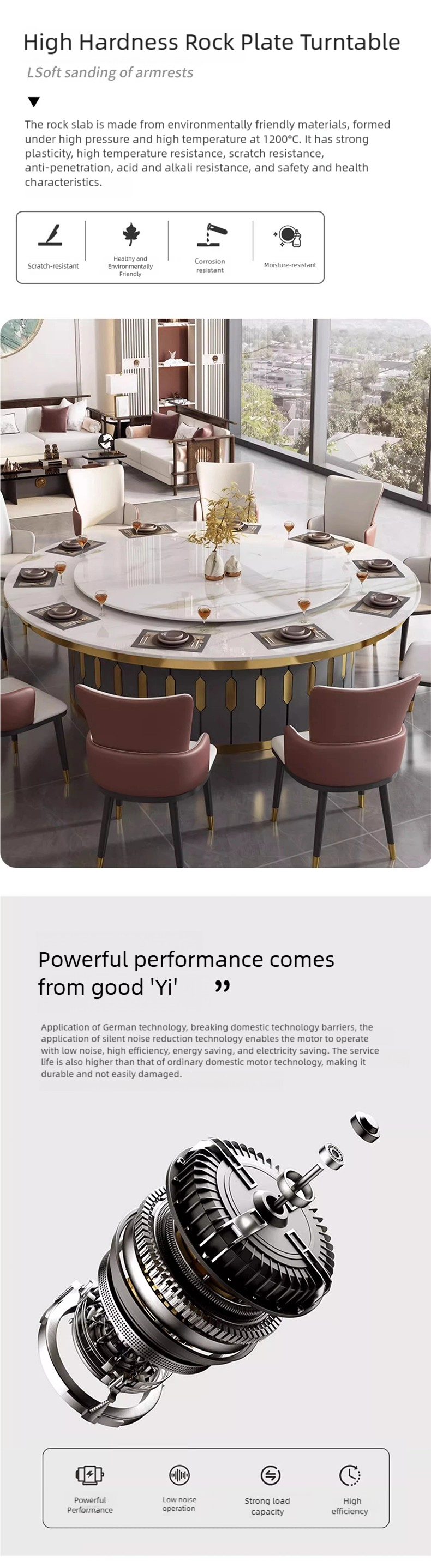 | テーブル | Metal table legs+ high-hardness rock plate turntable |