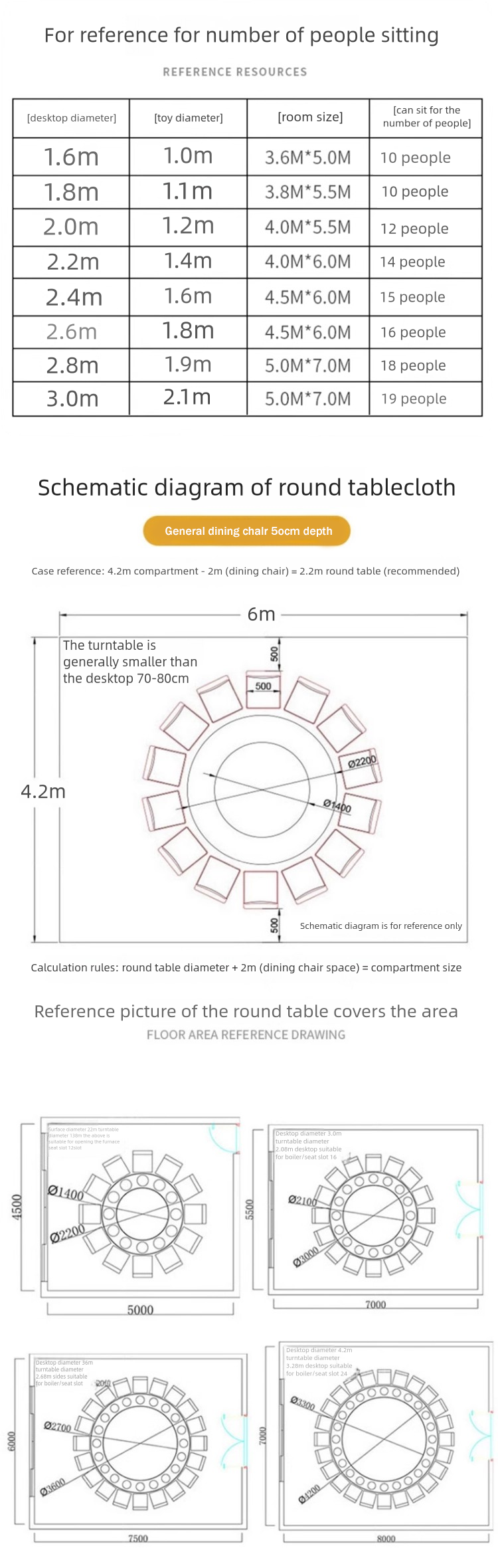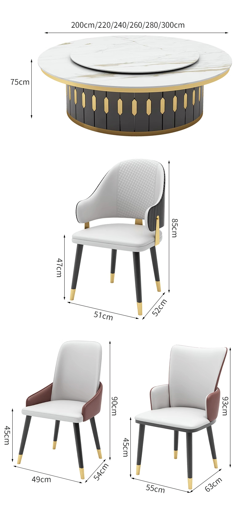 Our wholesale dining table set helps you elevate your banquet hall, wedding venue, or hotel dining space. We offer seven sizes of hotel round tables: 180cm, 200cm, 220cm, 240cm, 260cm, 280cm, and 300cm, ensuring you can find the perfect fit for any event or seating arrangement.