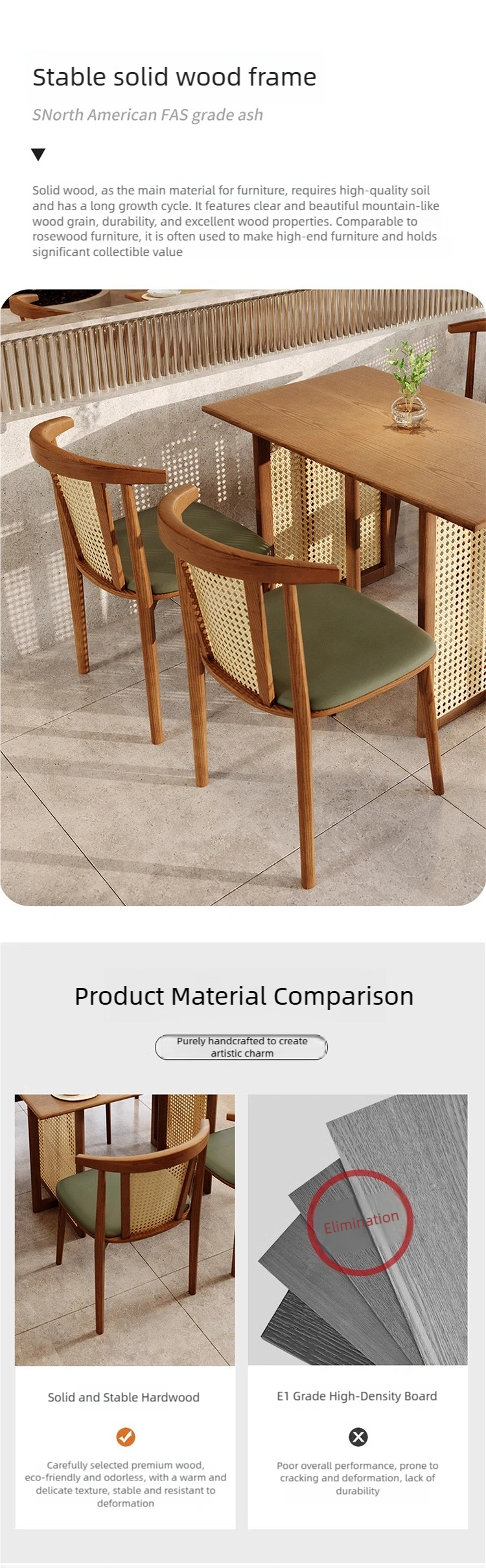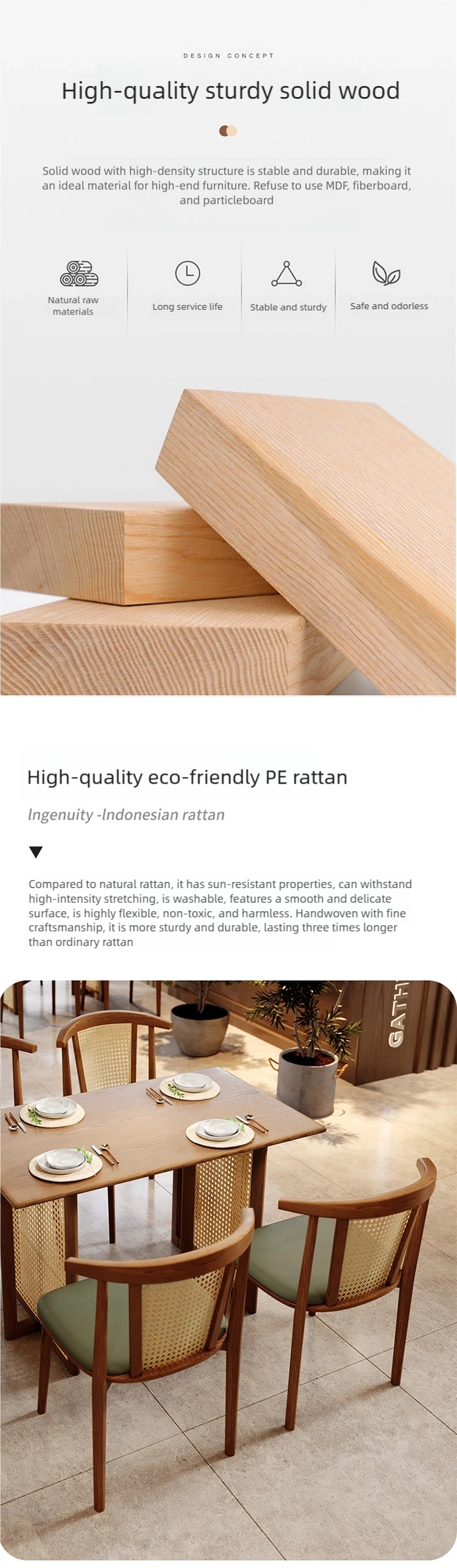 | 椅子 | Solid wood frame + premium leather upholstery + woven rattan |