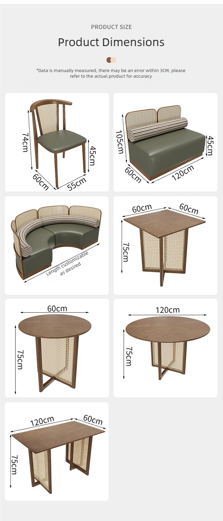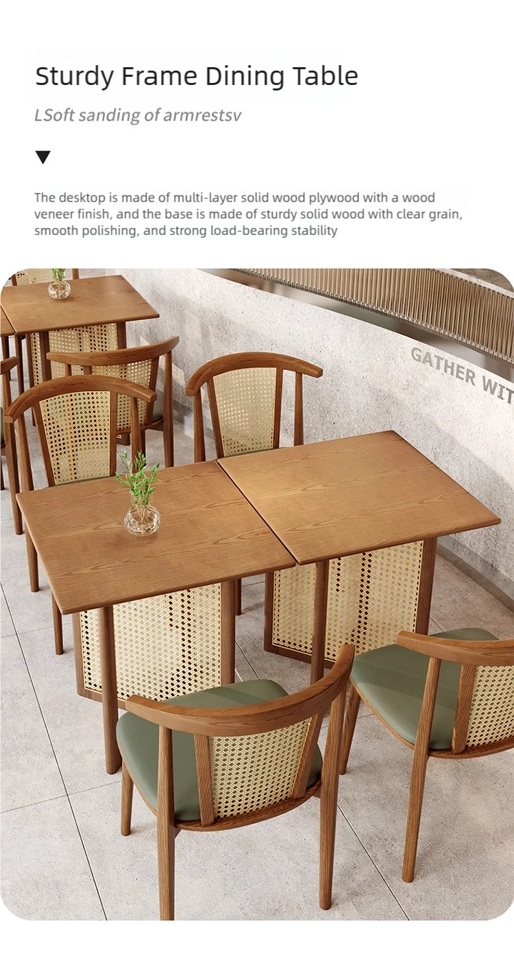 Southeast Asian Style Design: Both booths and chairs feature wooden frames and rattan backrests, making them not only aesthetically pleasing but also sturdy and durable.