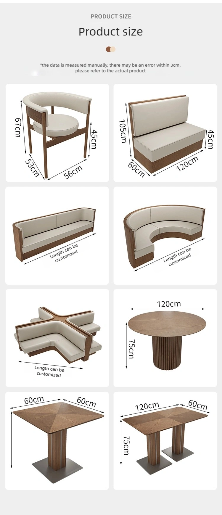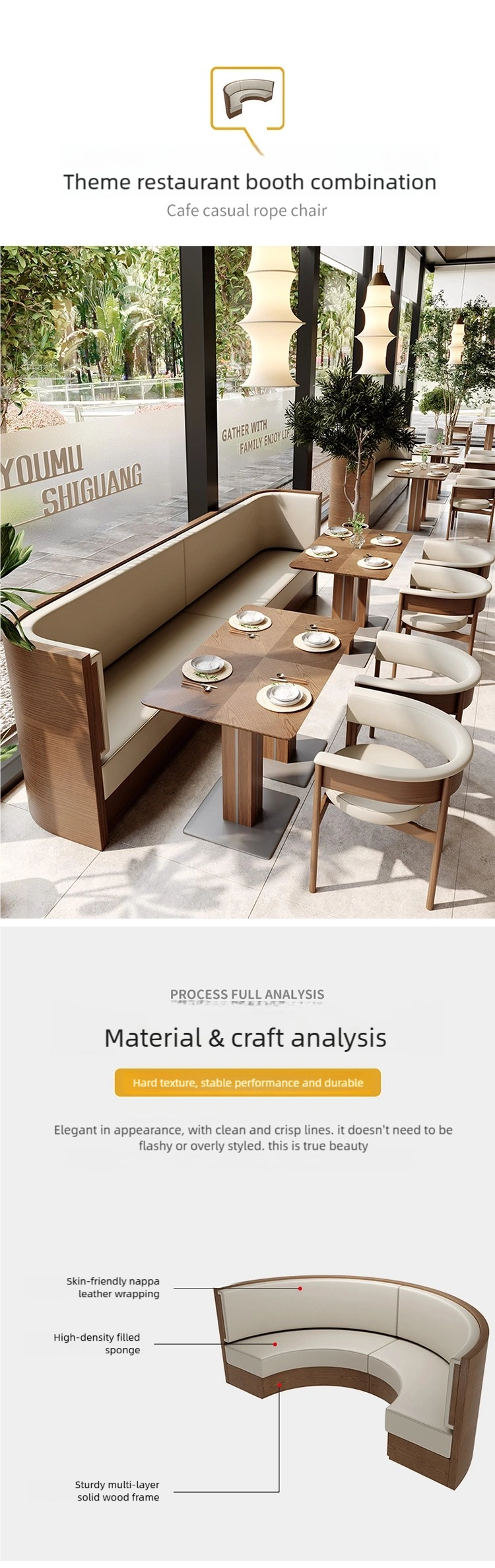 Soft and Comfortable Seating: The seat cushions for both booths and seats are made of high-quality, scratch-resistant, and durable leather, filled with high-density foam for softness, comfort, and resistance to sagging.