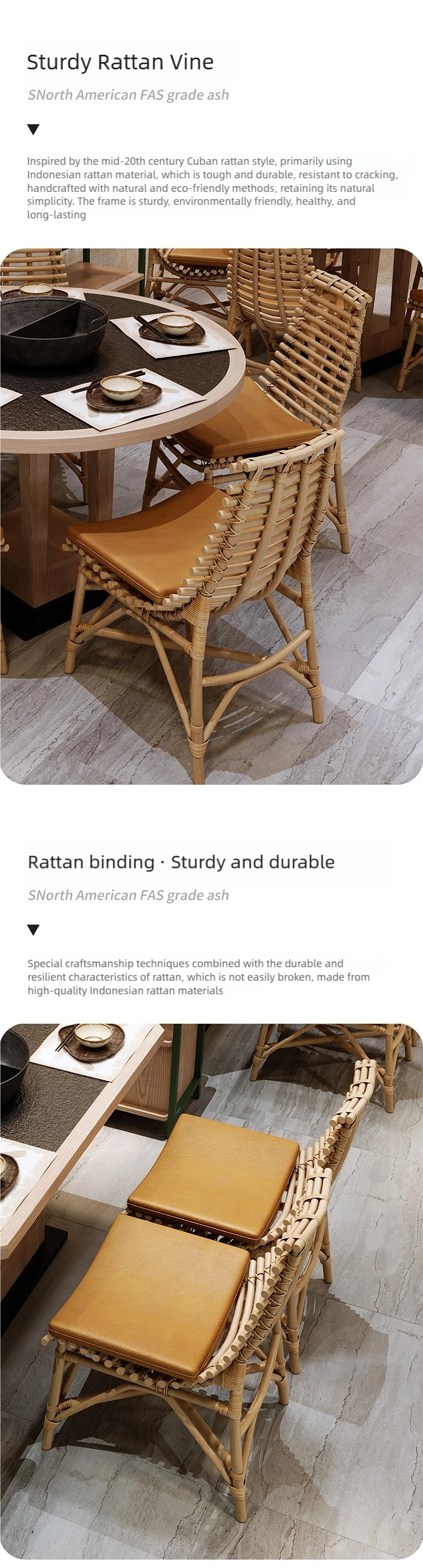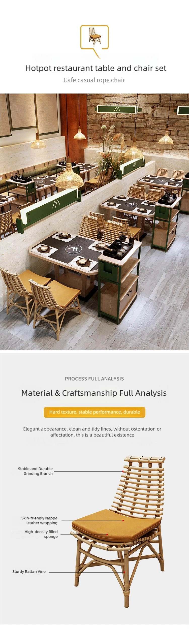 Combining Natural Rattan Elements: The rattan chair offers both industrial-grade stability and durability (suitable for high-frequency commercial use) while also exuding a natural and warm homey atmosphere.