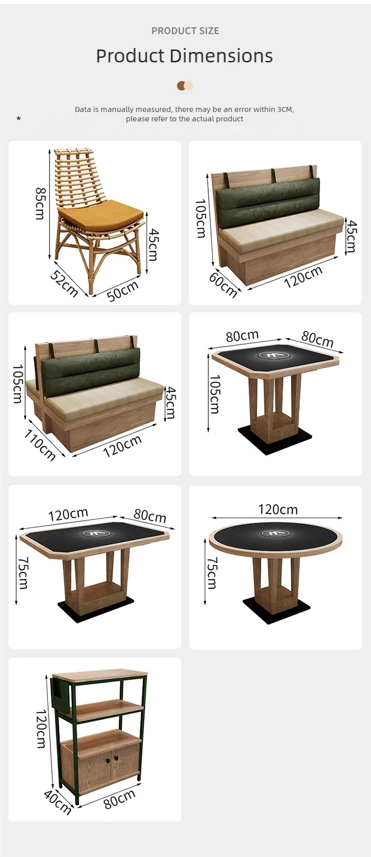 | Booth | Multi-layer Solid Wood Frame + Eco-friendly Nappa Leather + High-density Resilient Foam |