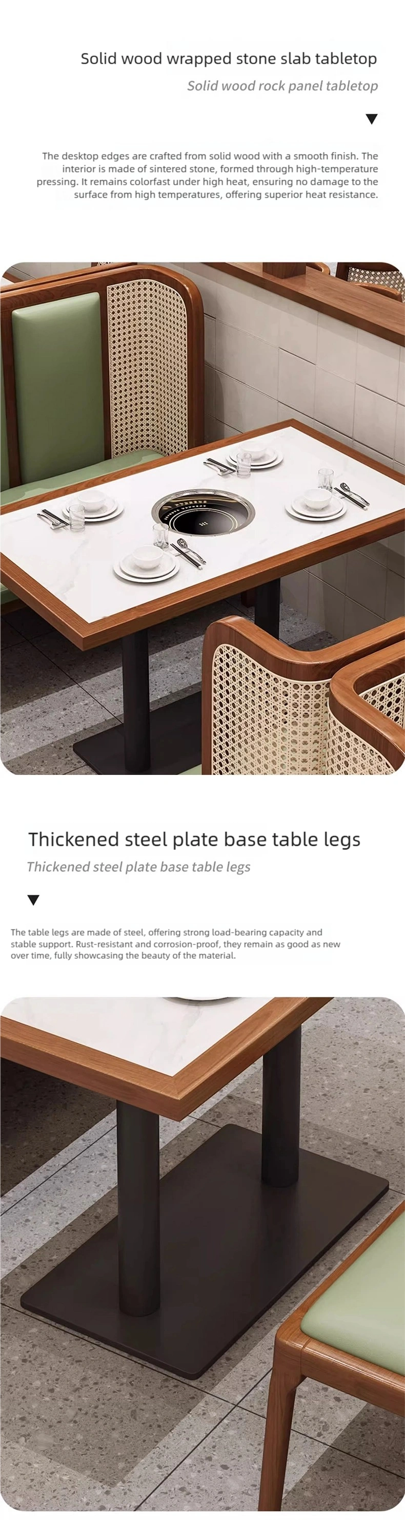 - Comfortable Dining Experience: Our wholesale hot pot table and chair sets are made with high-density resilient foam, providing excellent seating comfort and maintaining their shape for extended periods, making them suitable for high-traffic commercial dining environments.