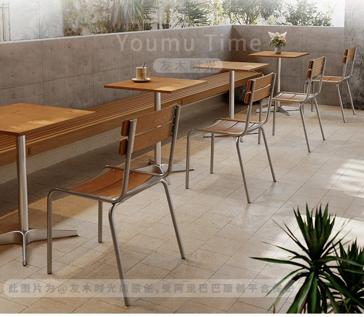 Wholesale restaurant tables and chairs with stainless steel frames in Korean style, perfect for restaurants, cafes, bistros, and dessert shops. This wholesale set includes a matching dining table, ergonomic chairs, and wall benches. We offer OEM and ODM customization services and solutions to optimize your restaurant’s space layout. Contact us for a quote.