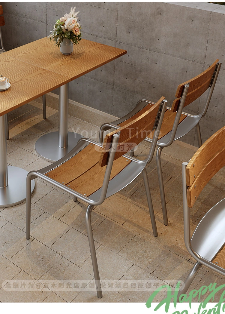 Comfort and Ergonomic Design: The chairs feature a combination of metal frames and wooden seats, providing sturdy and durable seating for enhanced longevity and aesthetics.