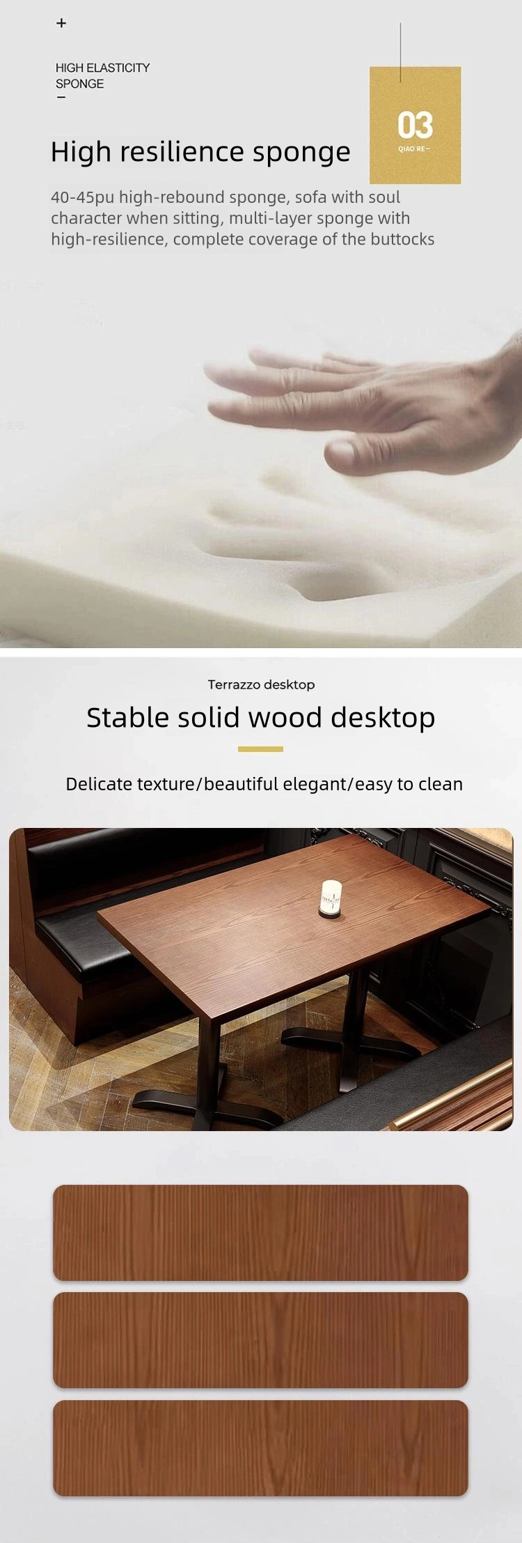 | Booth | Multi-layer solid wood frame + skin-friendly Nappa leather wrapping + high-density rebound sponge |