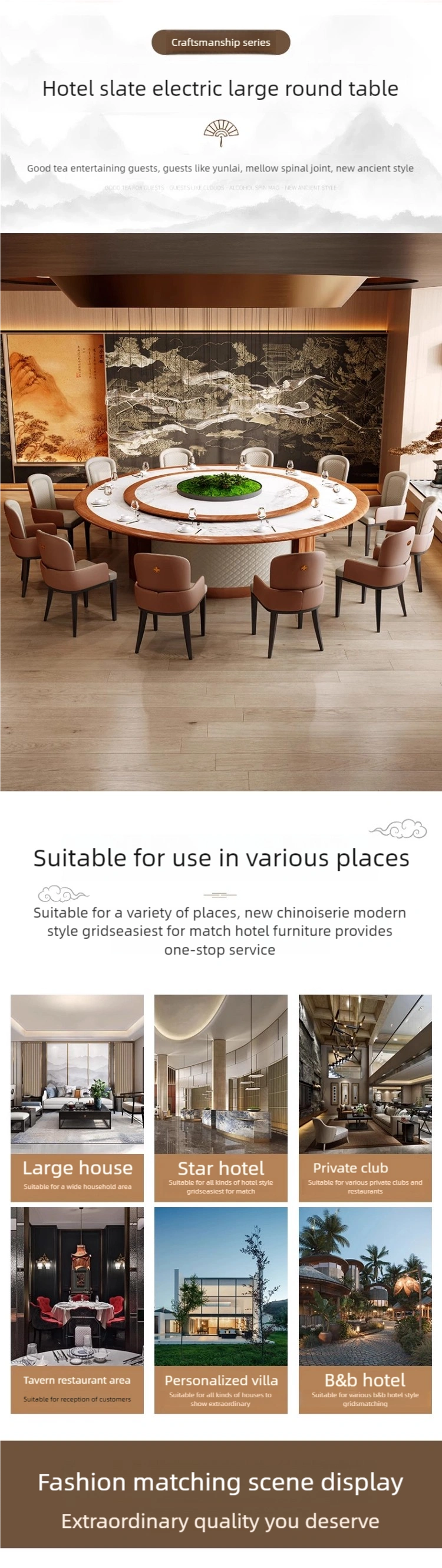 High-End Luxury: This hotel’s round table creates a luxurious ambiance with its exquisite design, premium materials, and superb craftsmanship, making it an ideal choice for elegant banquet halls and spacious fine-dining restaurants.