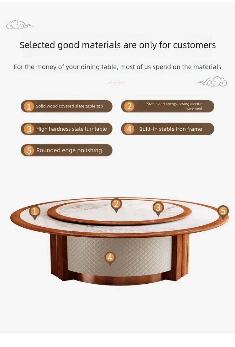Motorized Rotating Tabletop: The hotel round tables feature smooth and reliable rotation, providing a high-quality and practical dining experience for large groups.