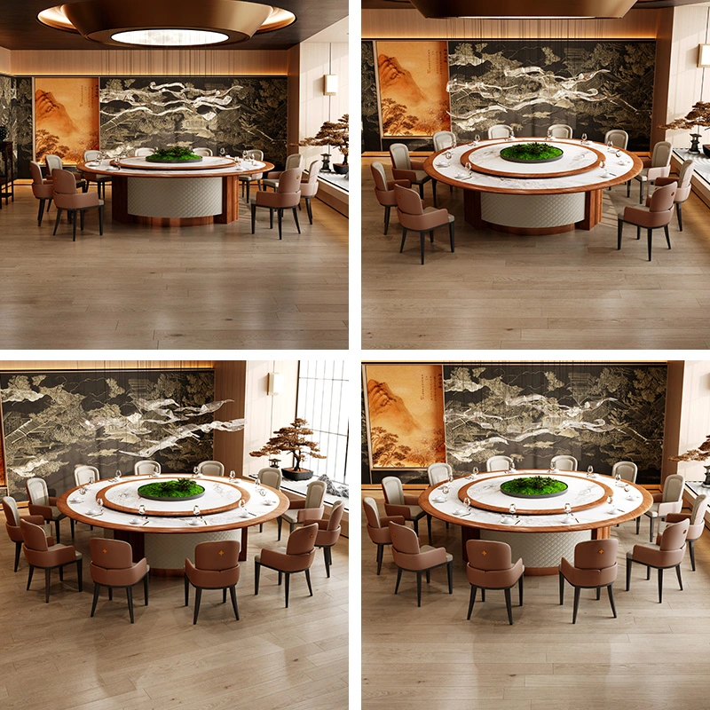 High-end Hotel Banquet Hall Table and Chair Set for Sale – Round Rotating Dining Table Set