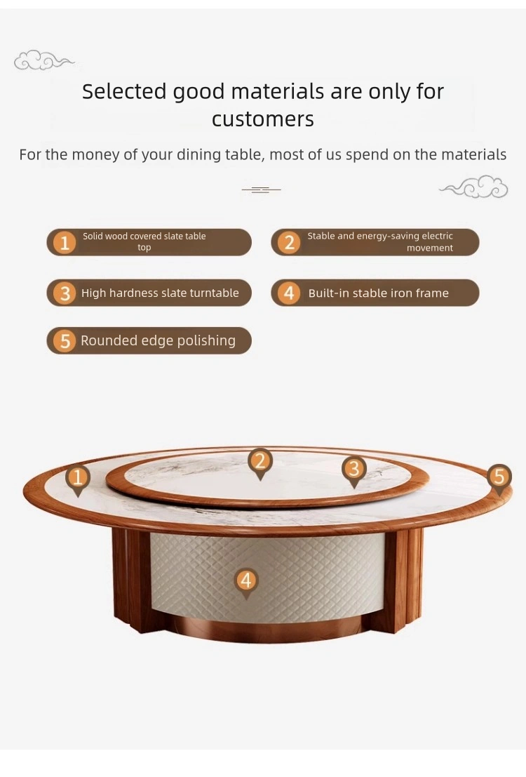 - Electric Rotating System: Equipped with a smooth and quiet electric rotation mechanism, allowing effortless dish sharing with one-touch control—enhancing convenience and luxury in banquet hall furniture settings.