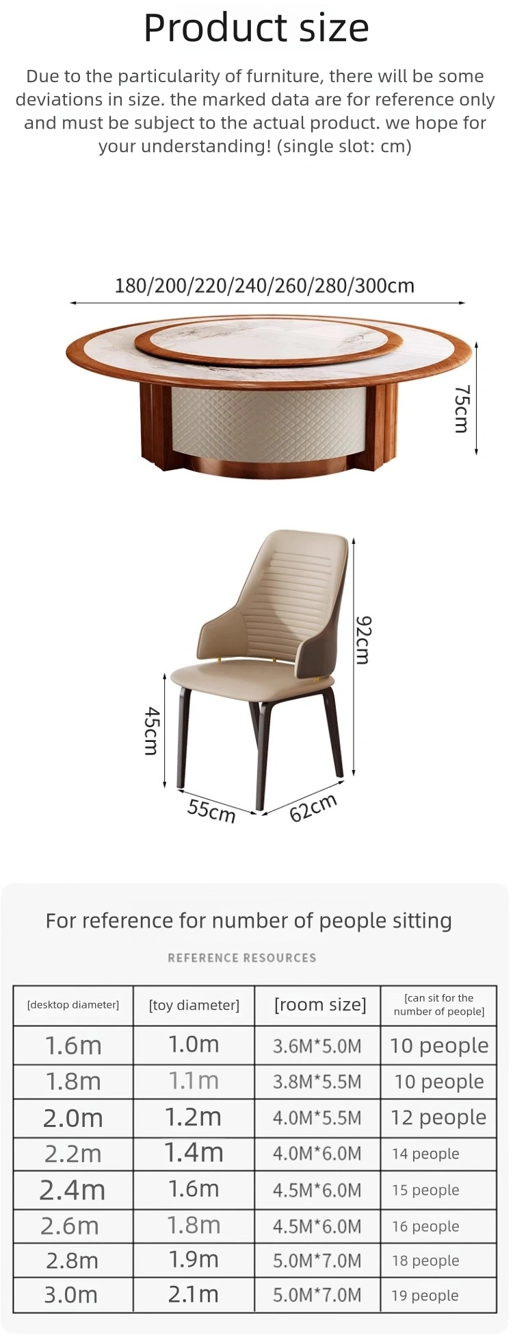 - Efficient Rotating Design: The round table features a built-in rotating center, facilitating food sharing and enhancing dining convenience and interactivity. Ideal for banquet halls, hotels, and private restaurants.