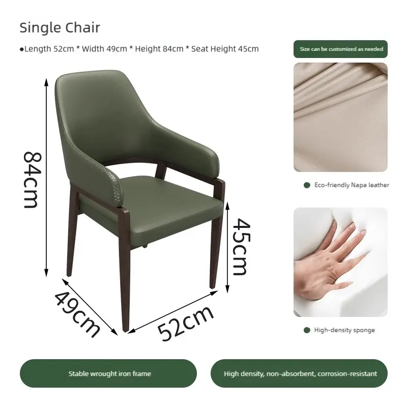 Chair | Iron to wood grain frame + skin-friendly Nappa leather wrap + high-density rebound sponge |