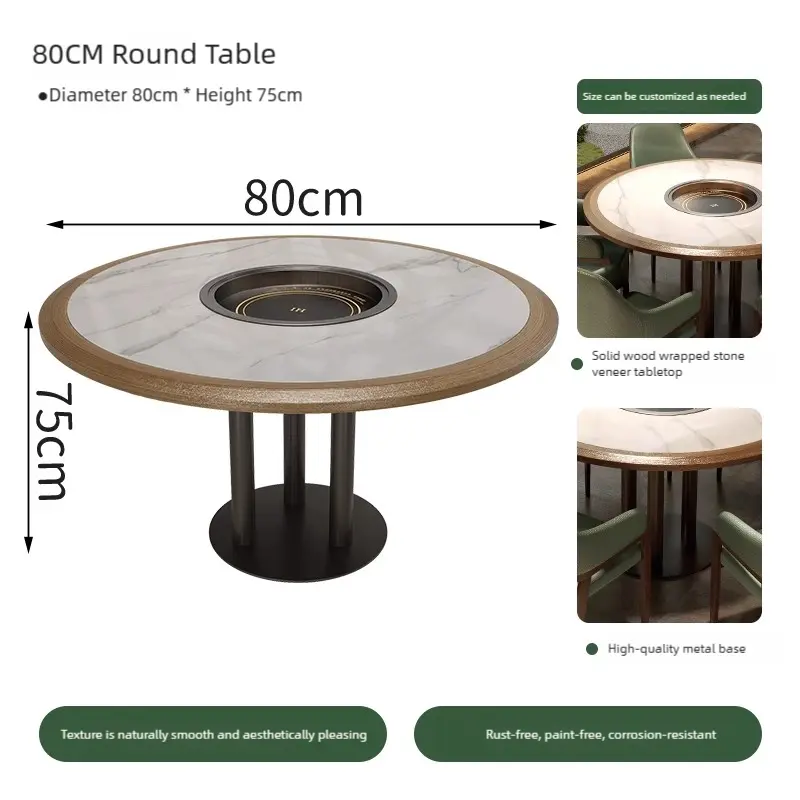 Table | Solid wood clad rock board with built-in induction cooker + high-quality iron base |