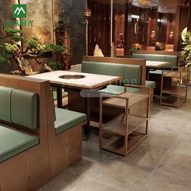 High-quality materials: Hot pot restaurant furniture utilizes high-density solid wood for stability and durability, making it an ideal material for high-end furniture. MDF, particleboard, and fiberboard are not used.