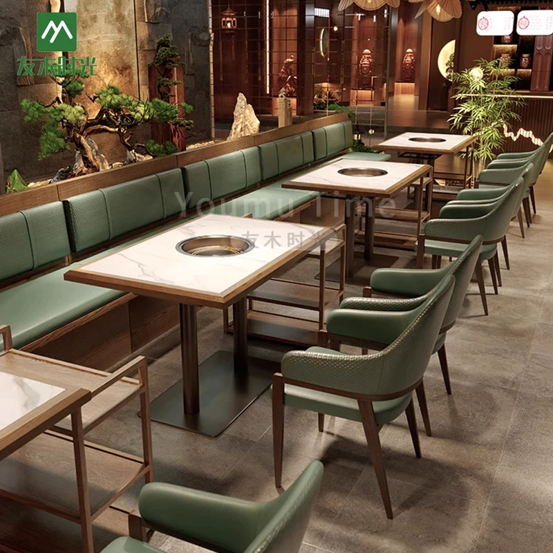 Commercial Hot Pot Restaurant Furniture Wholesale – Built-in Induction Hot Pot Tables, Comfortable Chairs & Booth Sofas