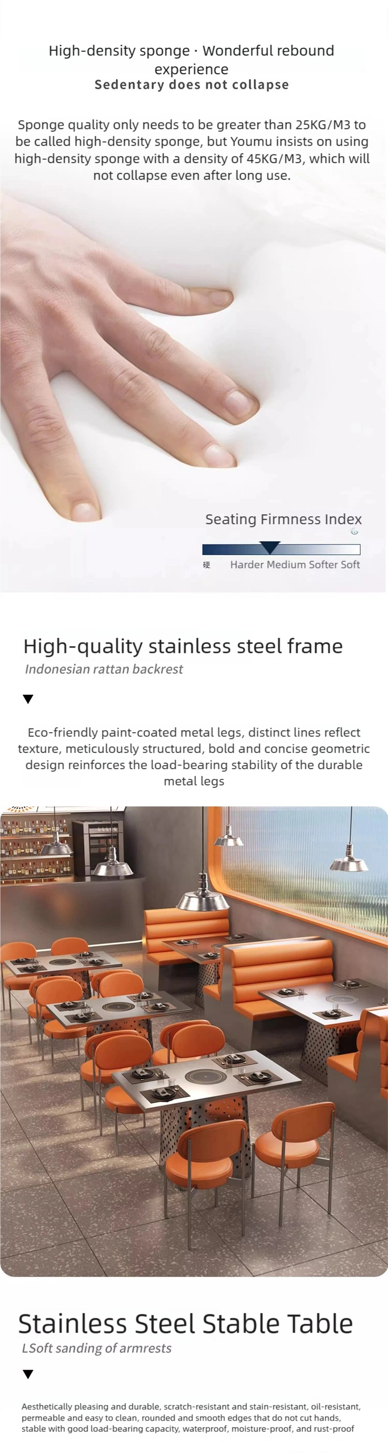 | Booth | Stainless steel material + high-quality Nappa leather + high-density sponge |