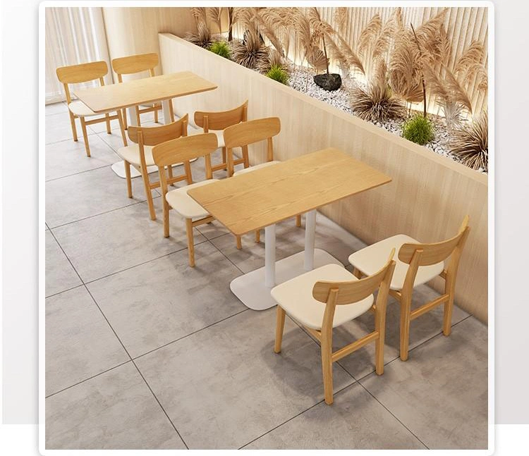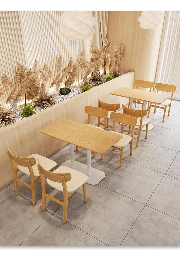Modern minimalist style restaurant furniture directly supplied from the factory. Upgrade your space with this minimalist restaurant table and chair set, designed for modern cafés and dessert shops that value both style and comfort. OEM and ODM support, Contact us for a quote.