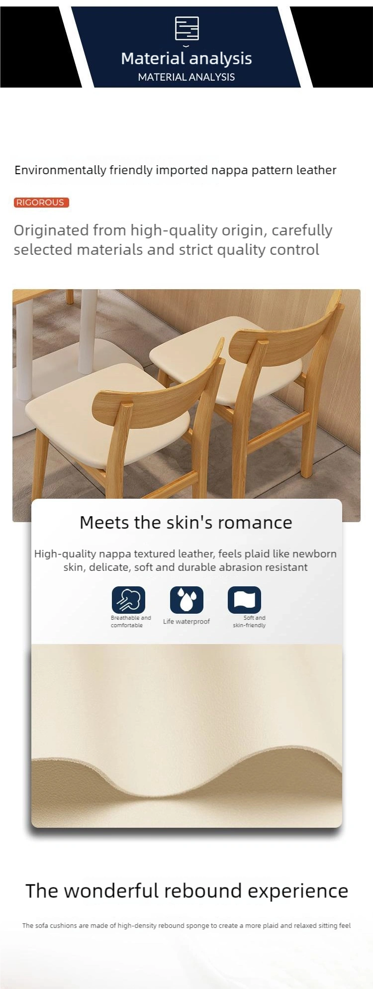 | Chair | solid wood frame+ skin-friendly Nappa leather wrap + high-density rebound sponge |