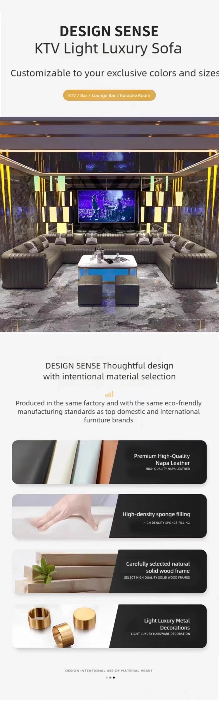 Wholesale KTV furniture and bar furniture. This modular sofa features a spacious U-shaped or L-shaped layout, maximizing seating while creating a warm and social atmosphere, making it an ideal choice for karaoke rooms, entertainment lounges, clubs, and high-end hotels.