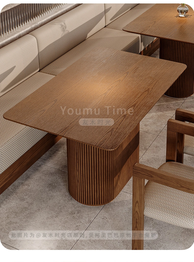 This minimalist, modern dining room furniture set brings warmth, comfort, and clever space planning to your dining area. Perfect for restaurants, cafes, and modern homes. As a factory direct supplier, we offer highly competitive prices, stable bulk supply, and comprehensive OEM and ODM customization services. Contact us today.