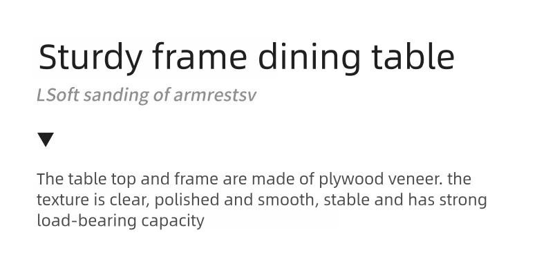 | Table | Multi-layered plywood tabletop + Wooden table legs |