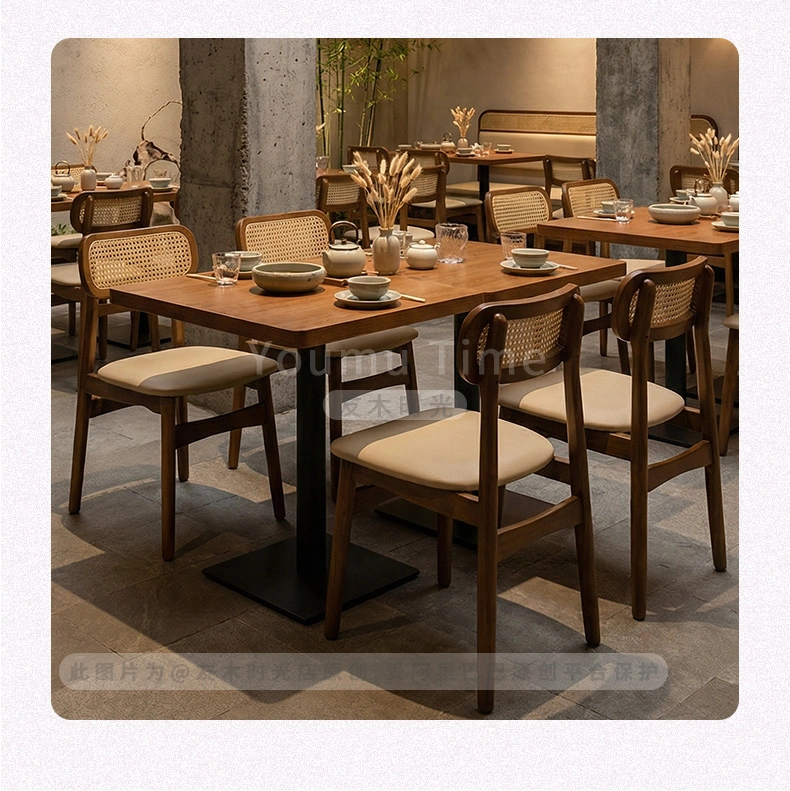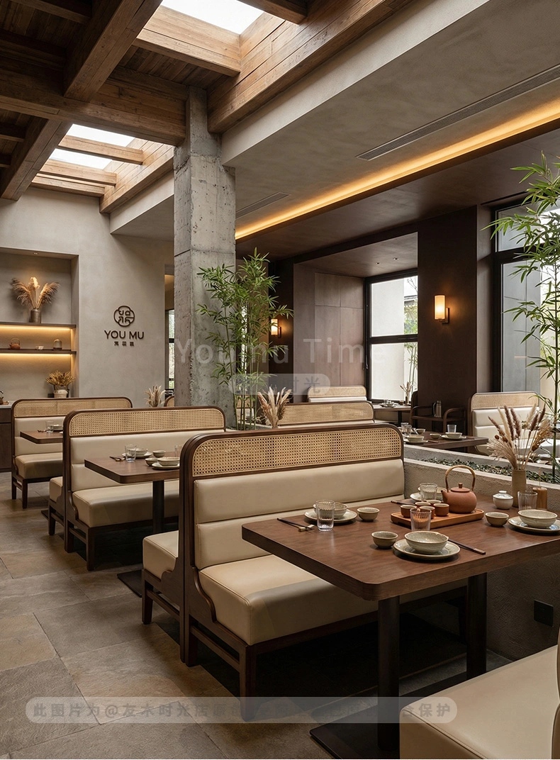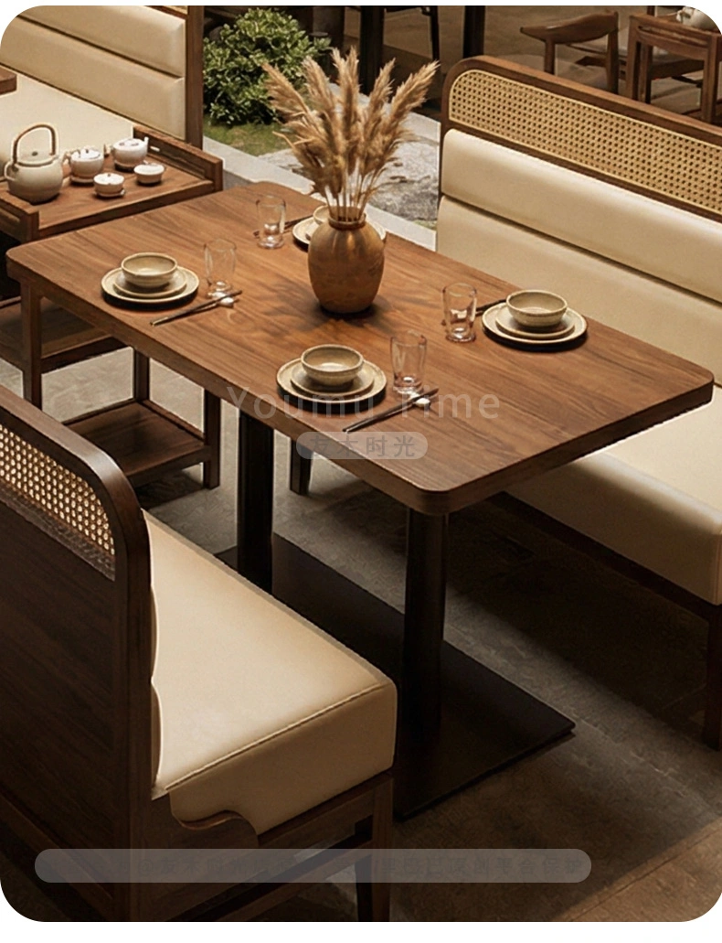 Elevate your restaurant or teahouse with our premium walnut-finish dining furniture. The wholesale restaurant furniture is ideal for a variety of commercial settings, including upscale Chinese restaurants, tea houses, and boutique dining spaces.