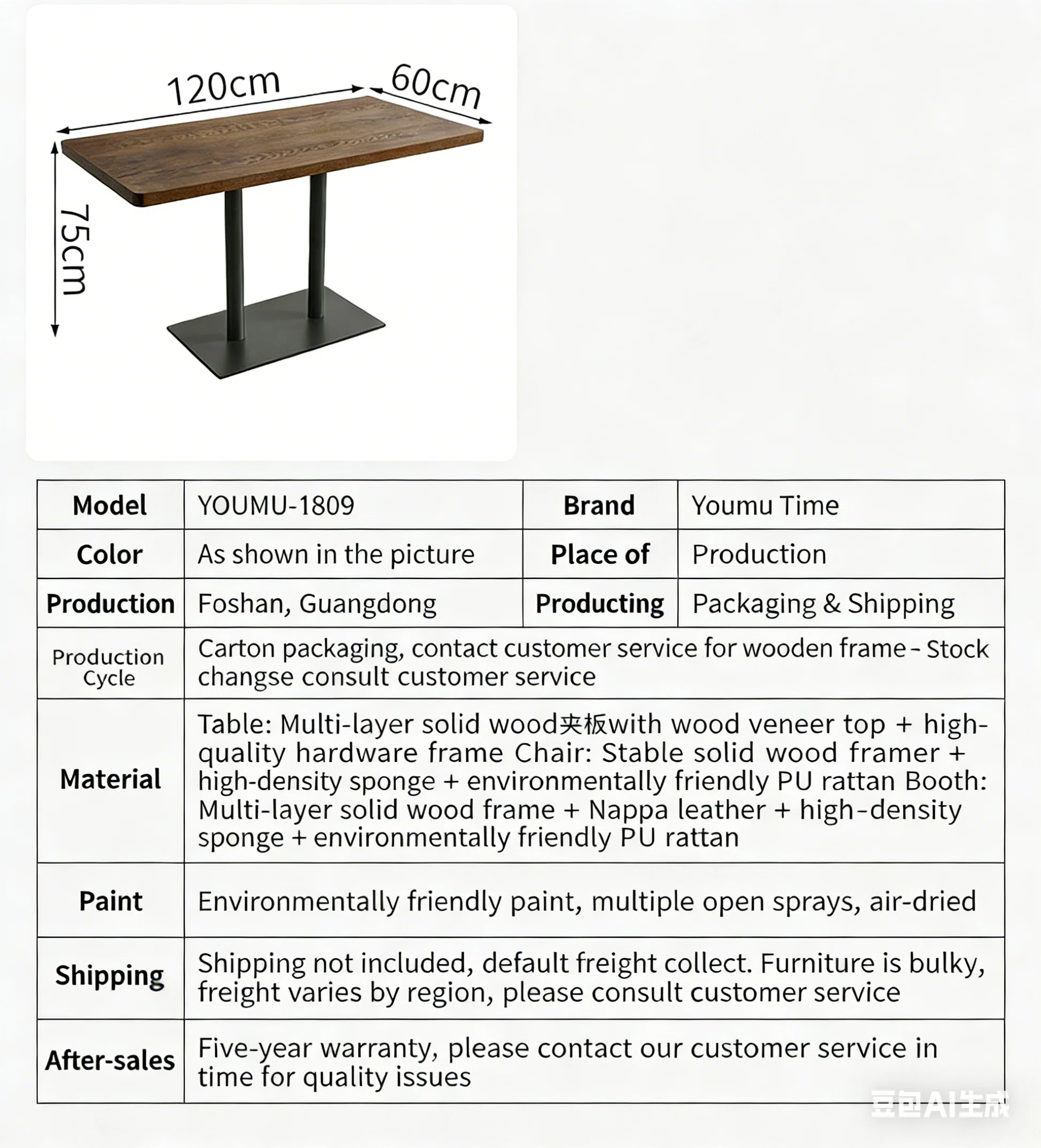| Table | Multi-layer solid wood frame Tabletop + high-quality hardware table legs |