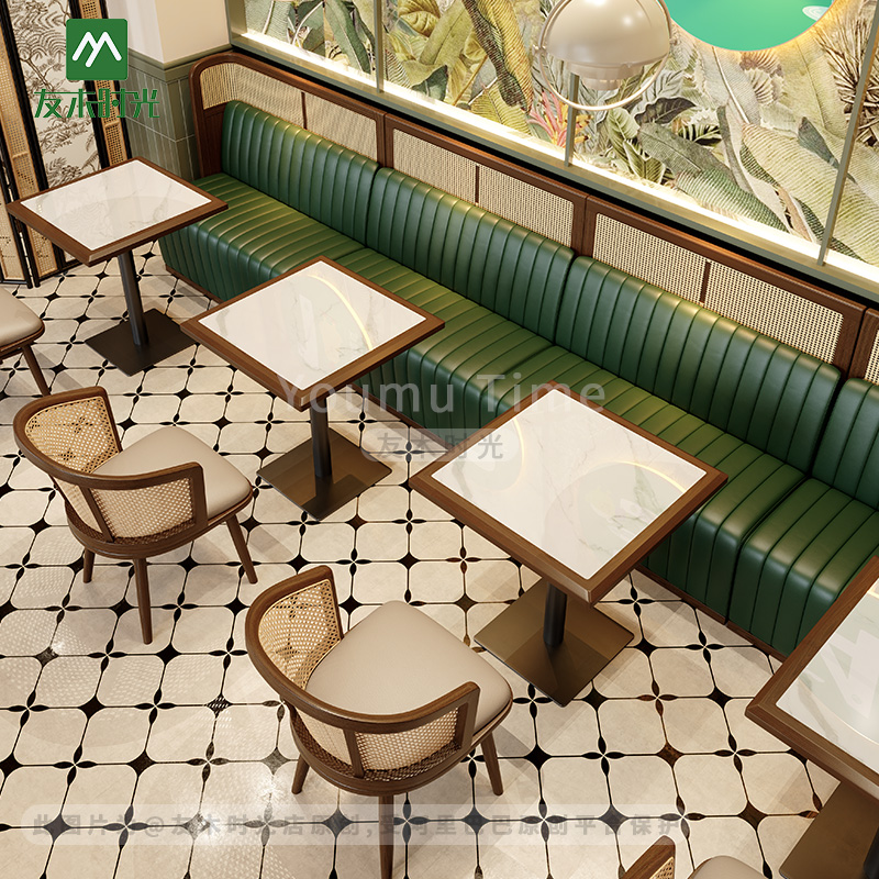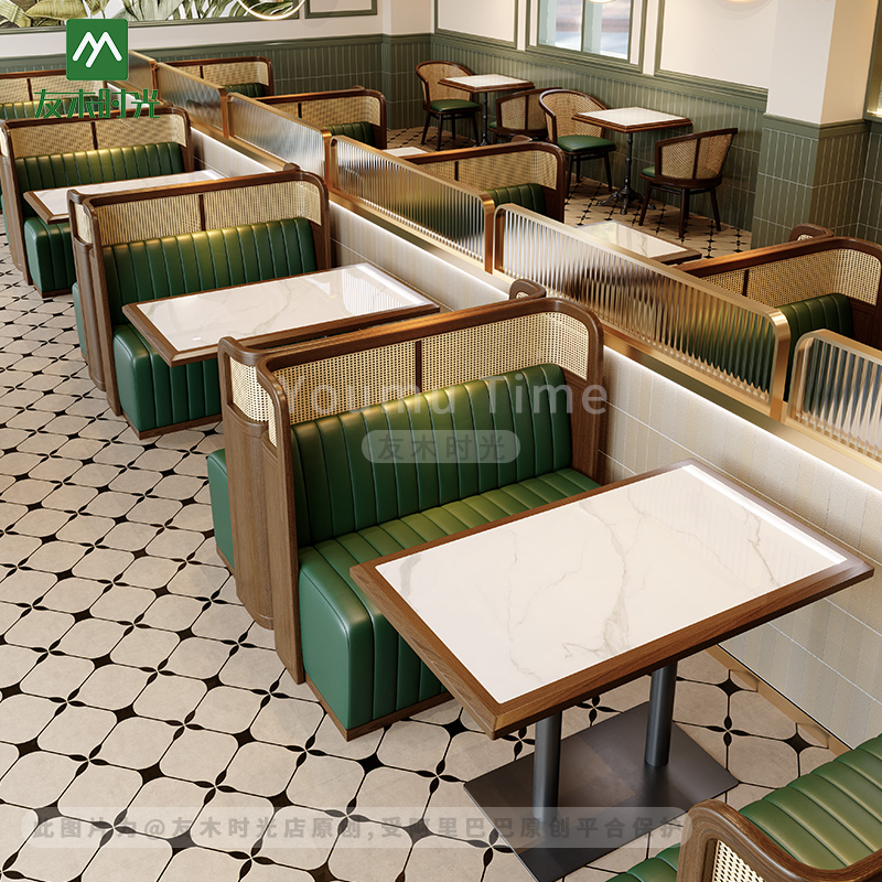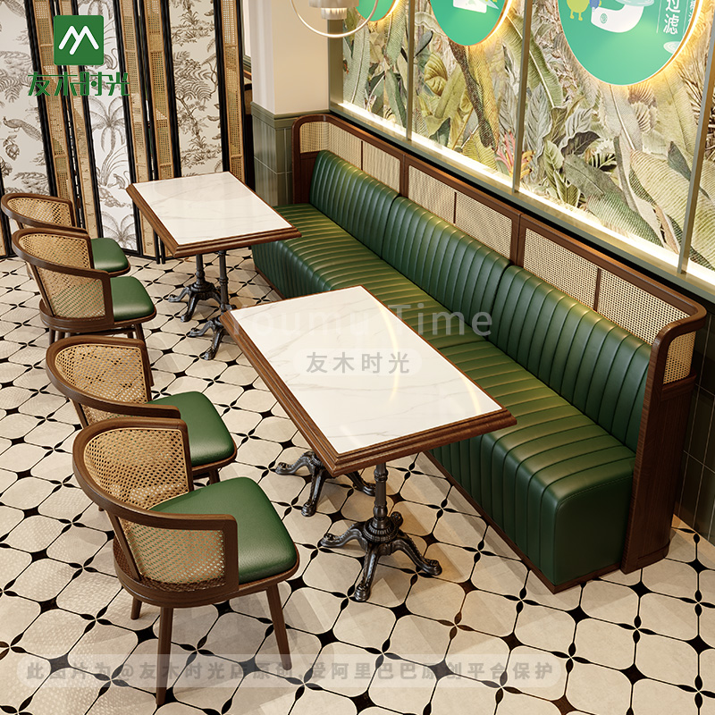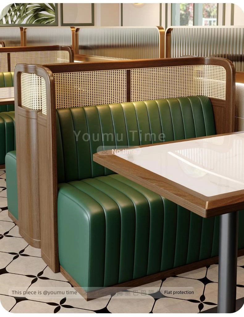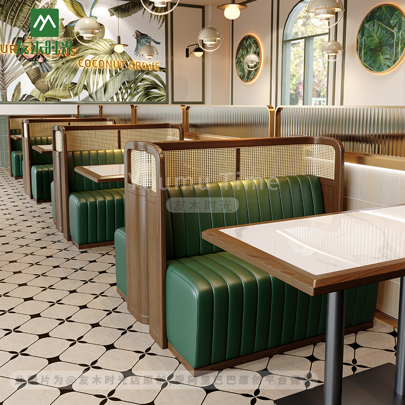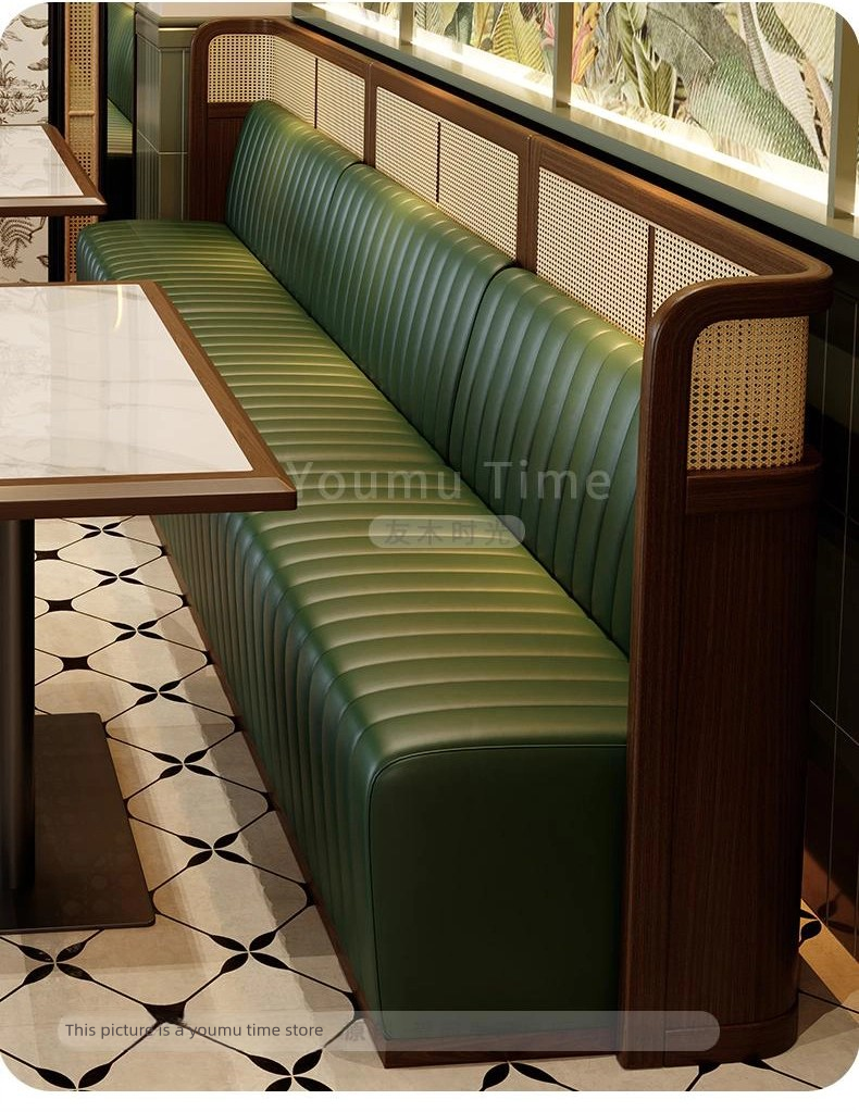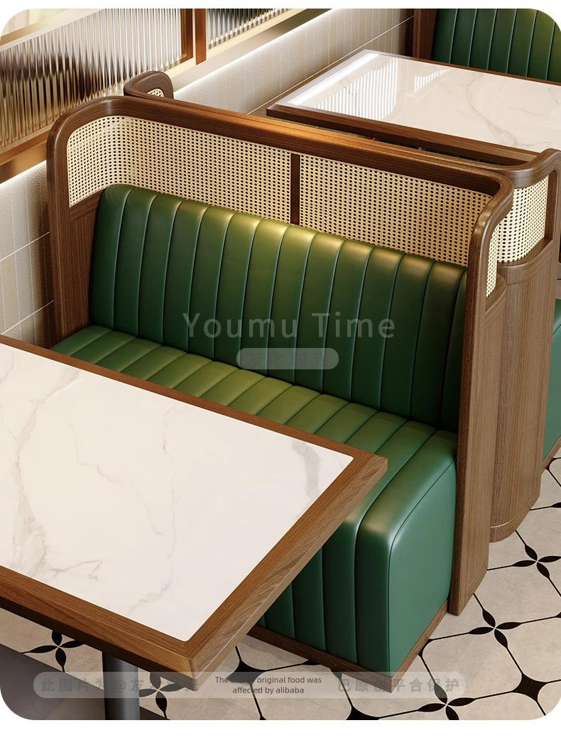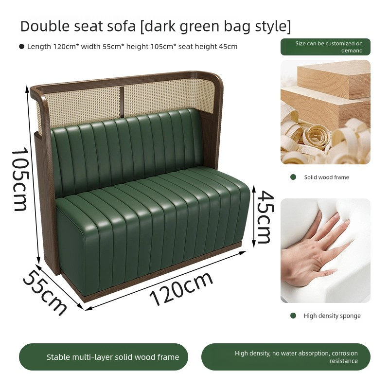 | Booth | Solid wood woven rattan frame + Eco-friendly Nappa Leather + High-density Resilient Foam |