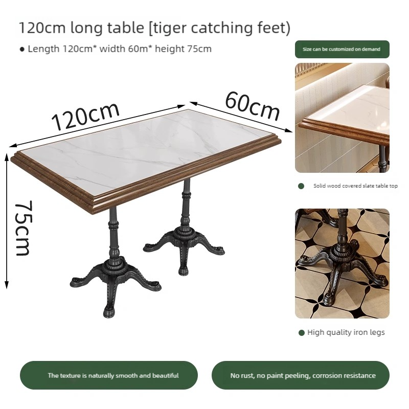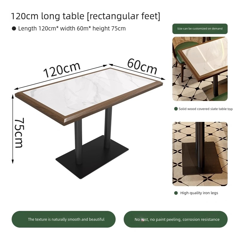 Solid wood tabletop with stone veneer + high-quality metal table legs |