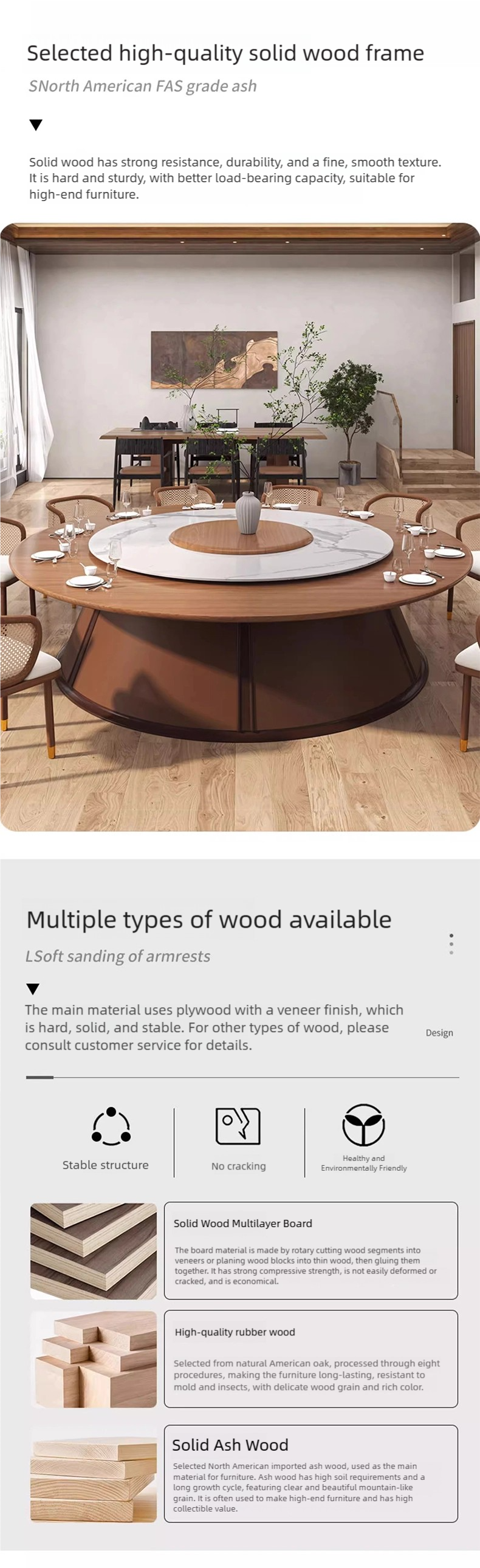 | Table | Solid wood multi-layer board with veneer + multi-layer solid wood frame + high-hardness rock plate turntable |