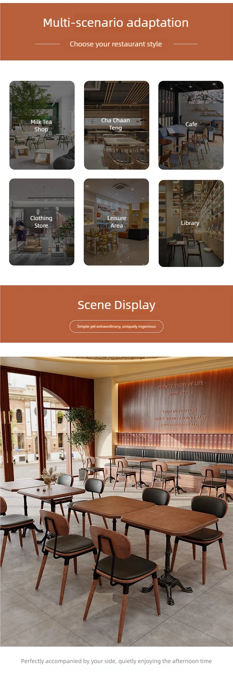 Versatile aesthetics: Whether your store is French retro, American industrial, or modern minimalist, this retro restaurant furniture, which combines deep walnut wood and matte black, can perfectly blend in and quickly elevate the visual grade of the space.