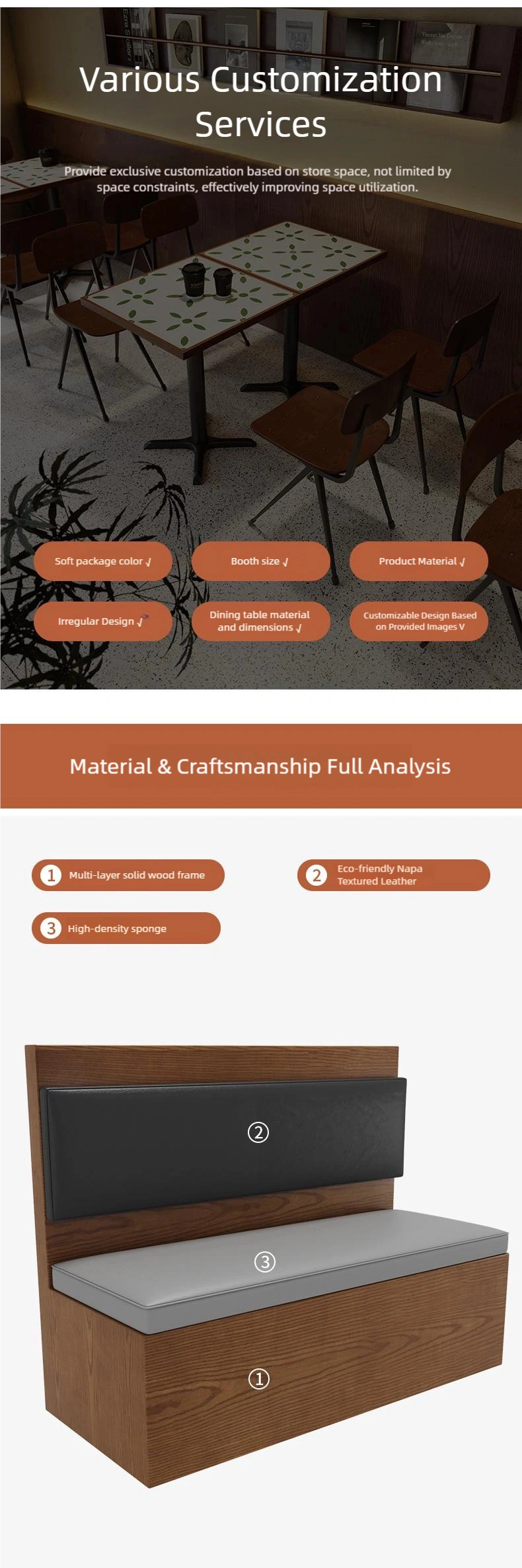 | Booth | Multi-layered plywood frame + premium leather upholstery |