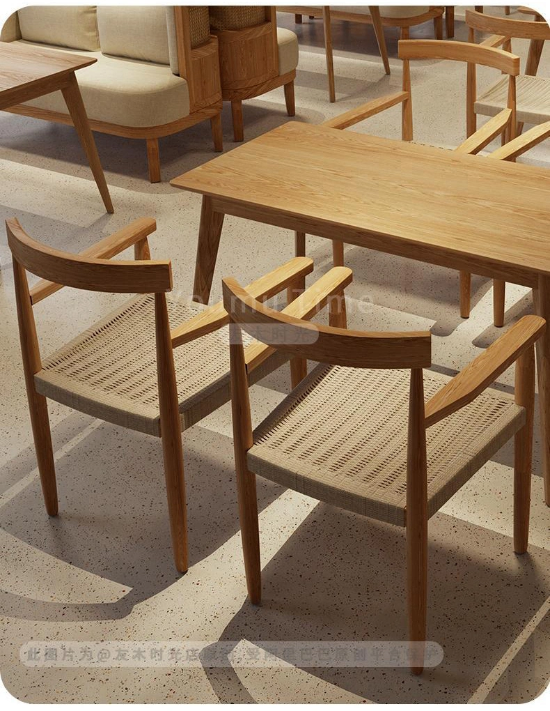 This dining furniture set seamlessly blends natural wood grain with clean, minimalist lines, making it perfectly suited for Chinese, Japanese, and Korean restaurants. It is ideal for use in Chinese noodle shops, teahouses, Korean BBQ restaurants, Japanese sushi bars, and modern light-fare cafes. It balances aesthetics with functionality, offering flexible layouts while possessing the durability required for high-traffic commercial use. Please contact us for a quote.