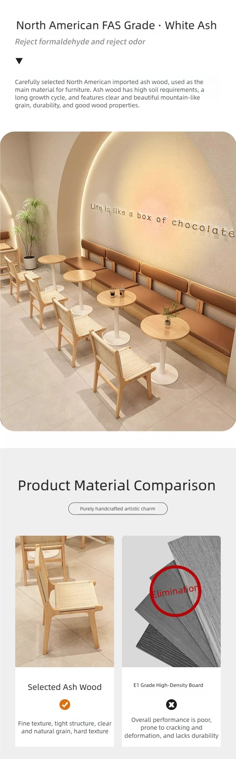 This cream-colored furniture set for milk tea shops and cafes creates a clean and sophisticated visual effect, making the space bright and comfortable, perfect for taking photos and uploading to Instagram. It can attract young consumers and enhance brand appeal.