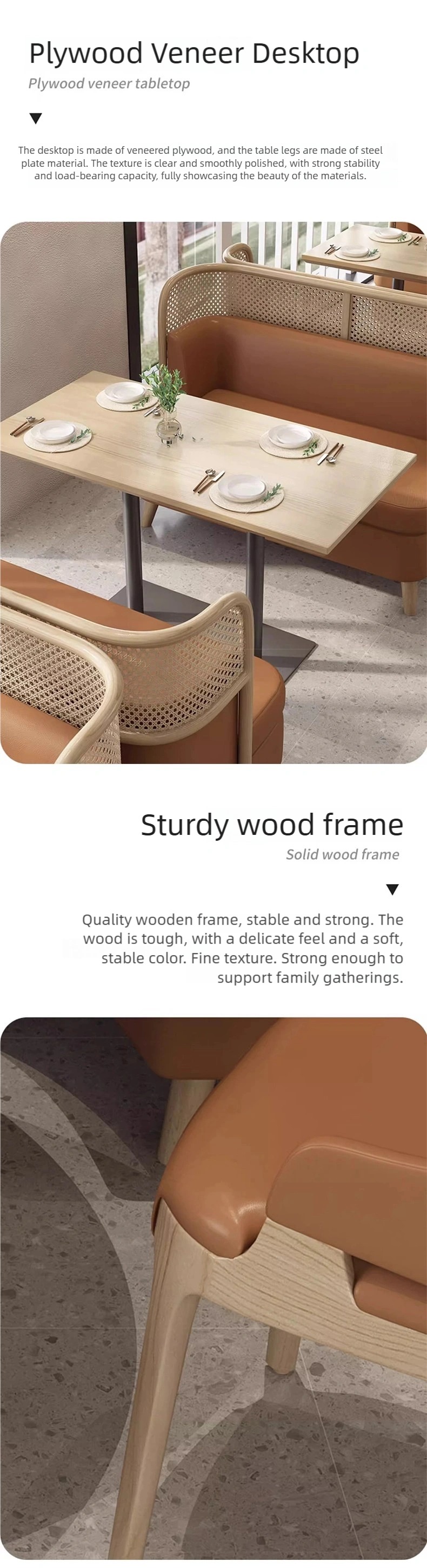 | Booth | Solid wood frame + high-quality Nappa leather + high-density sponge + woven rattan |