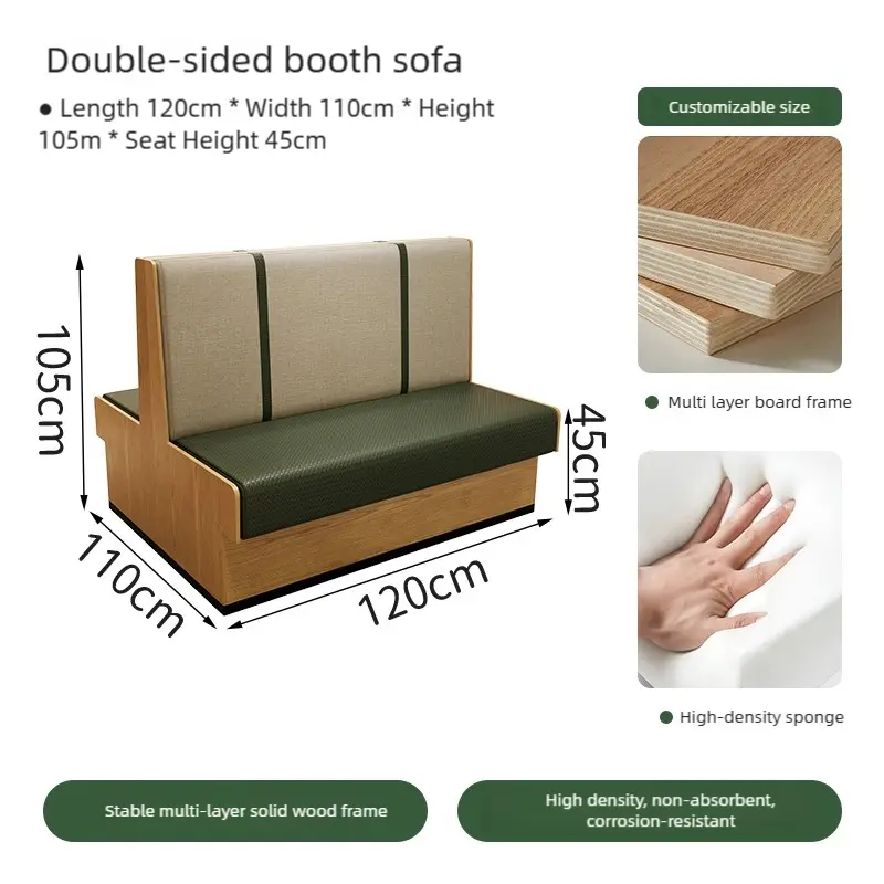 | Booth | Multi-layer Solid Wood Frame + Eco-friendly Nappa Leather + High-density Resilient Foam |